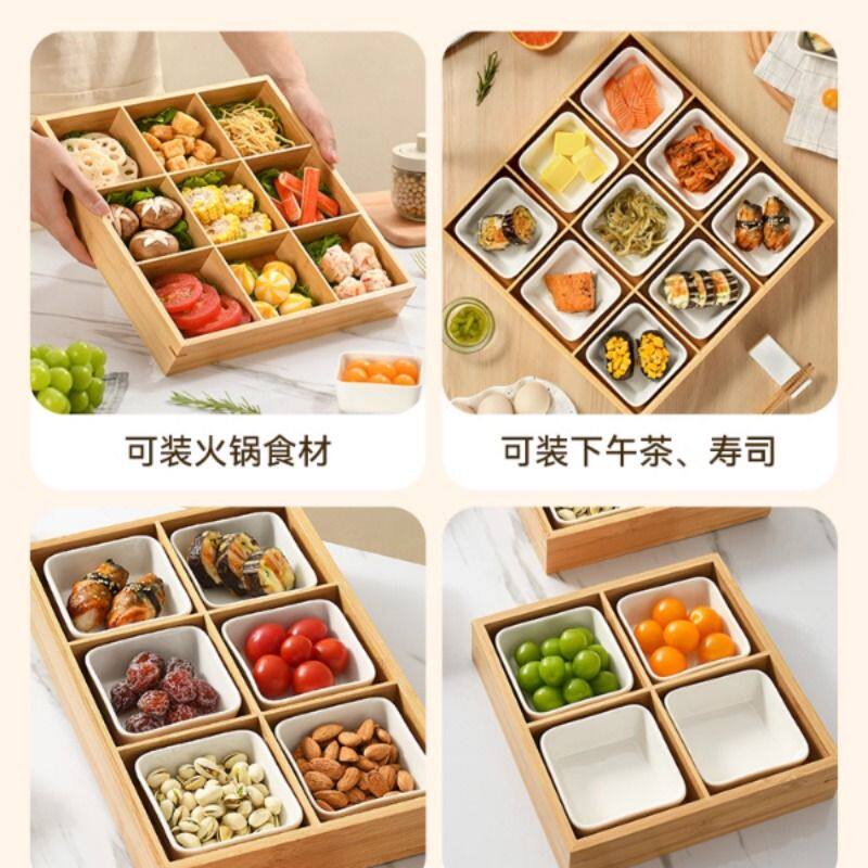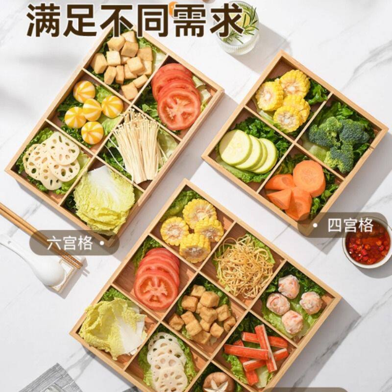 📚 九宫格托盘餐具火锅配菜盘拼盘竹木盘围炉煮茶点心盒干果盘木质盘