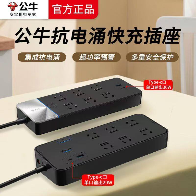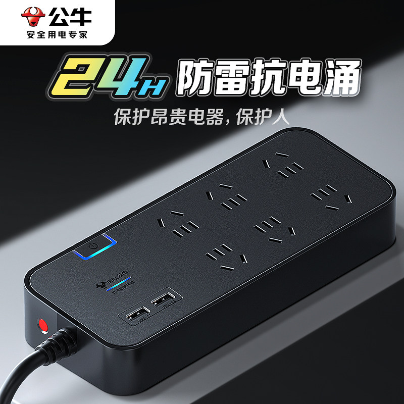 📚 公牛防雷抗电涌插座多功能电视电脑专用插排拖线板桌面电竞插线板
