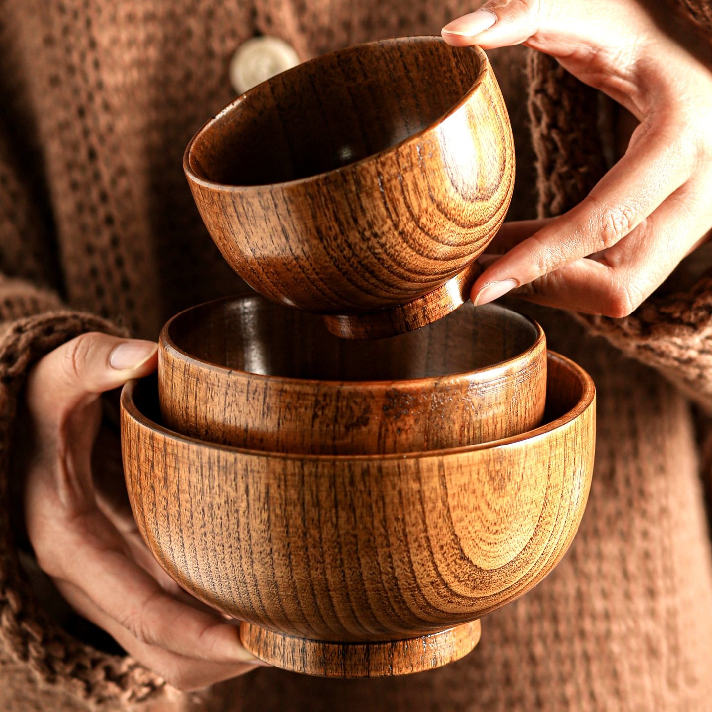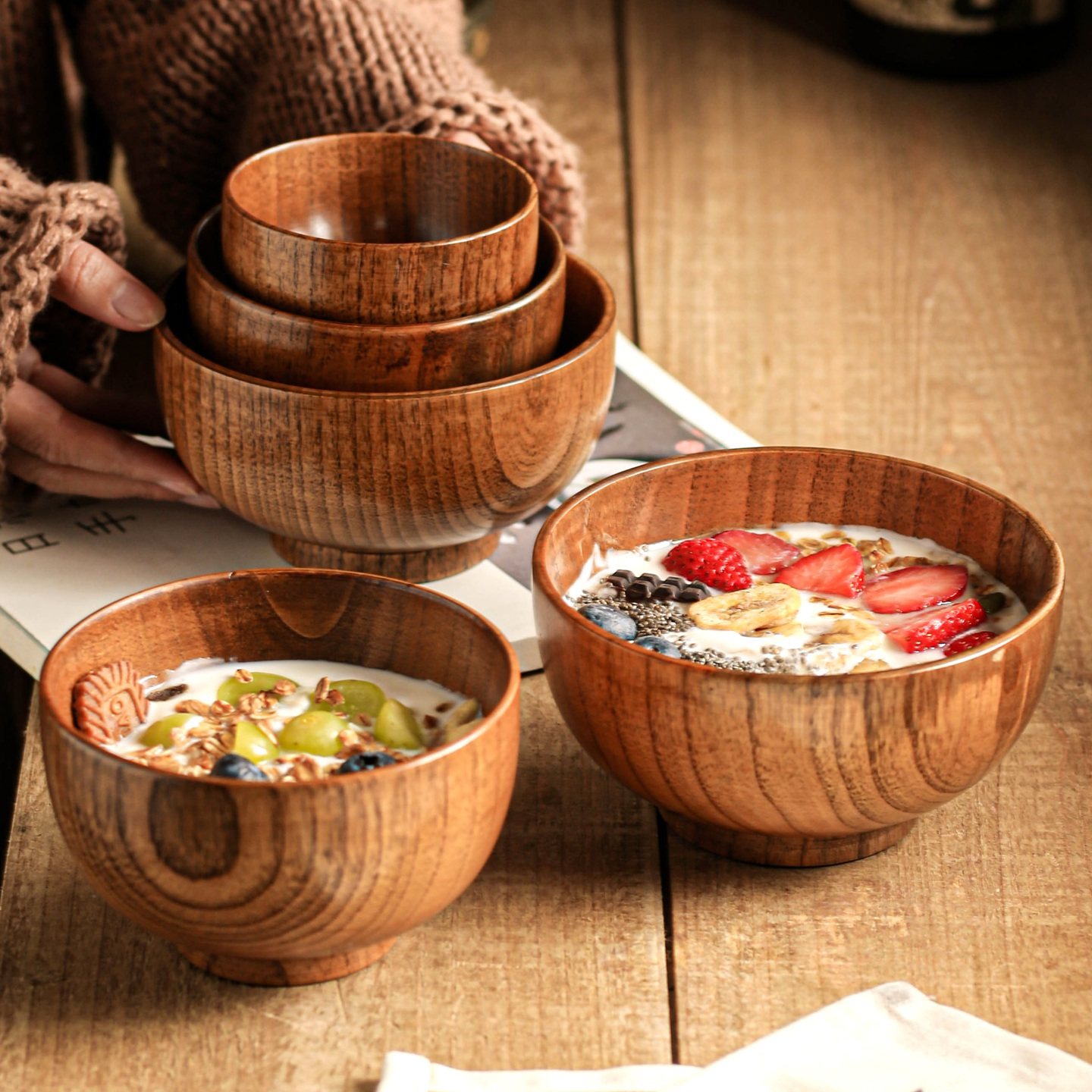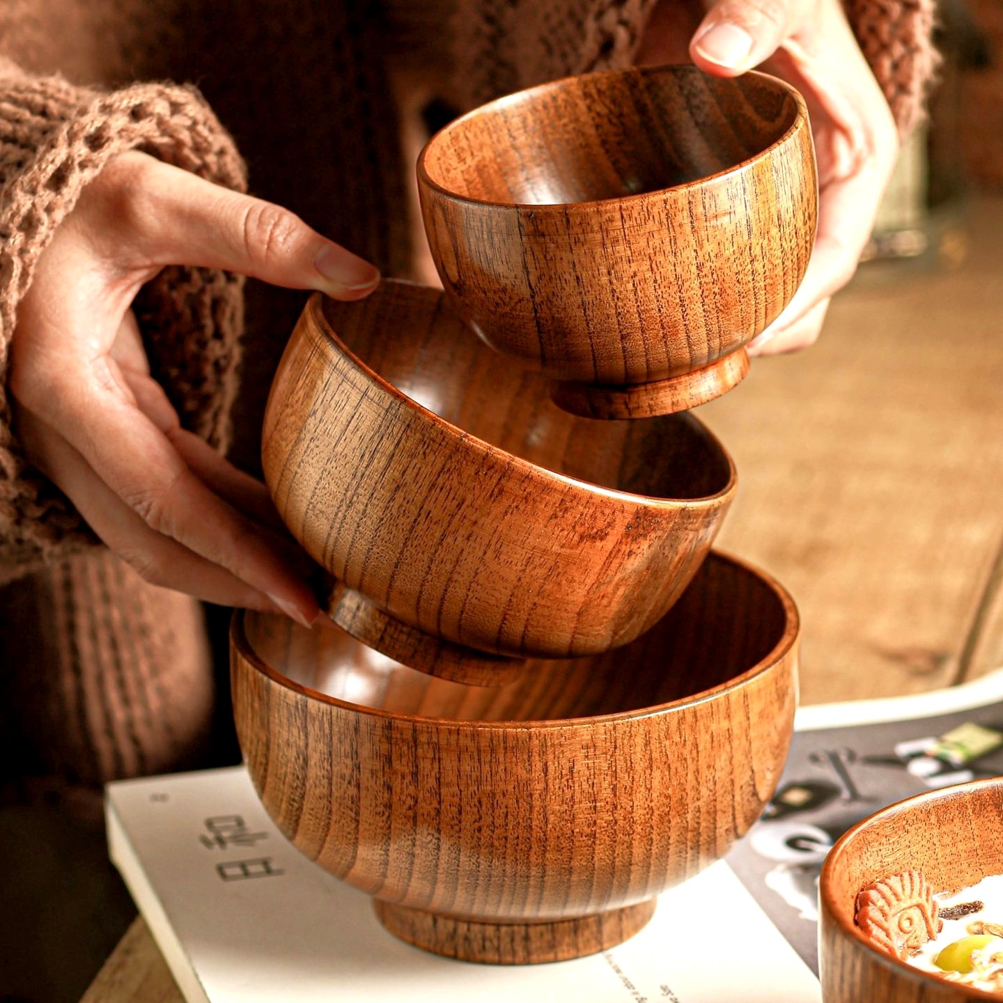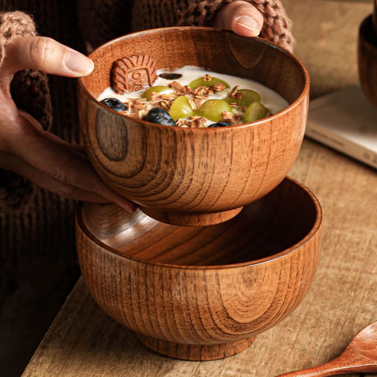📚 木头碗食品级汤碗家用4.5寸碗儿童早餐碗好看米饭碗木碗日式餐具