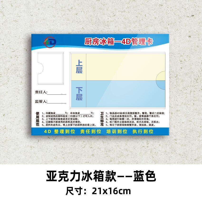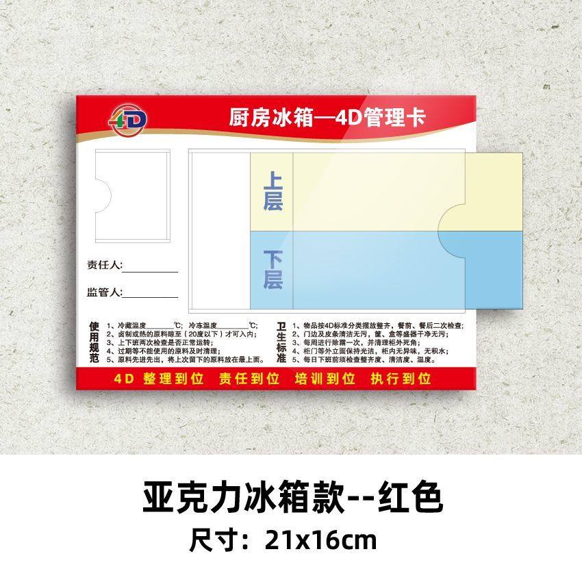 📚 亚克力4D厨房冰箱管理卡全套标签餐厅学校中厨食堂五常5D6T标识牌