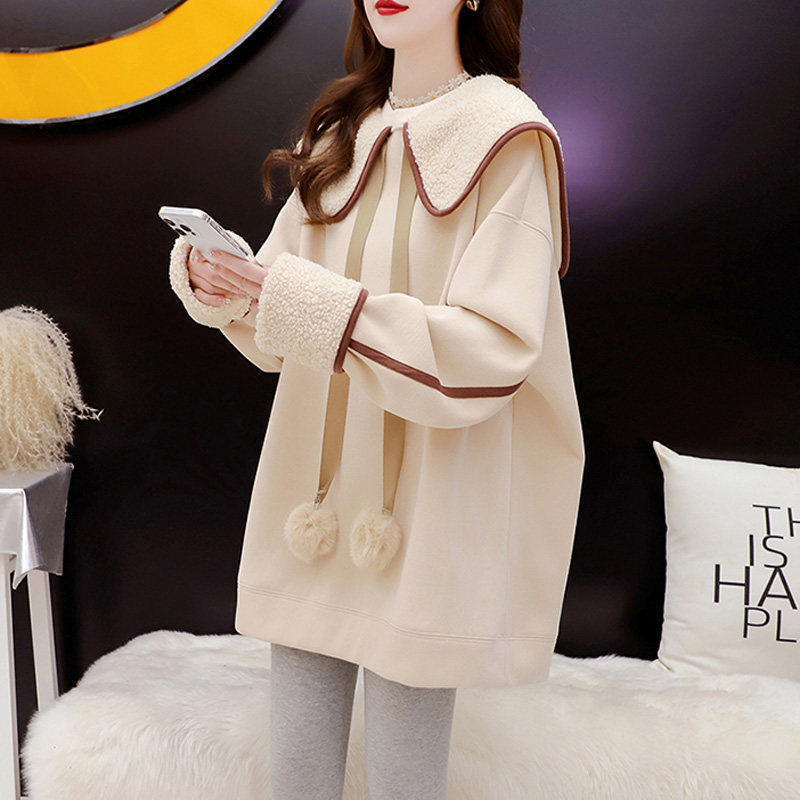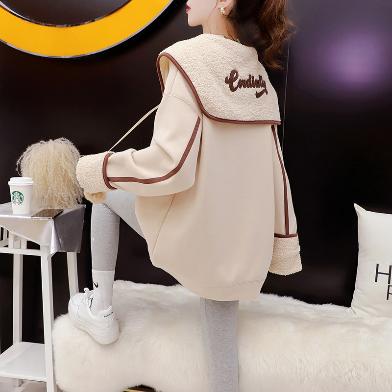 📚 海军领大码加绒卫衣女2025秋冬新款韩版宽松洋气中长款减龄上衣潮