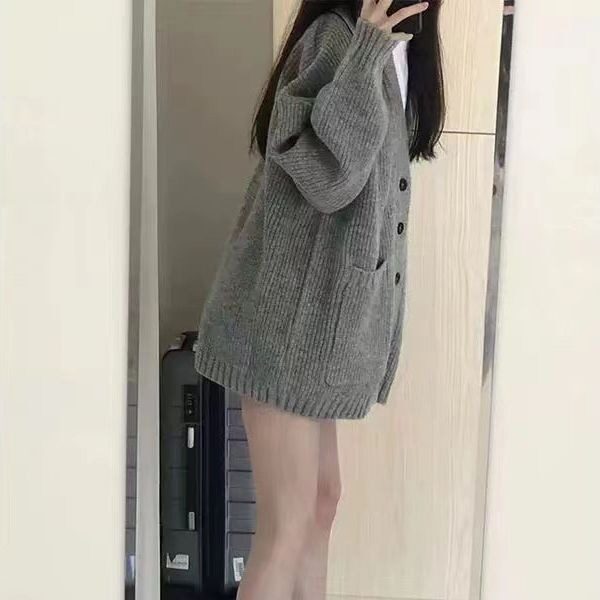 📚 Thick sweater autumn winter loose retro knitted cardiga top