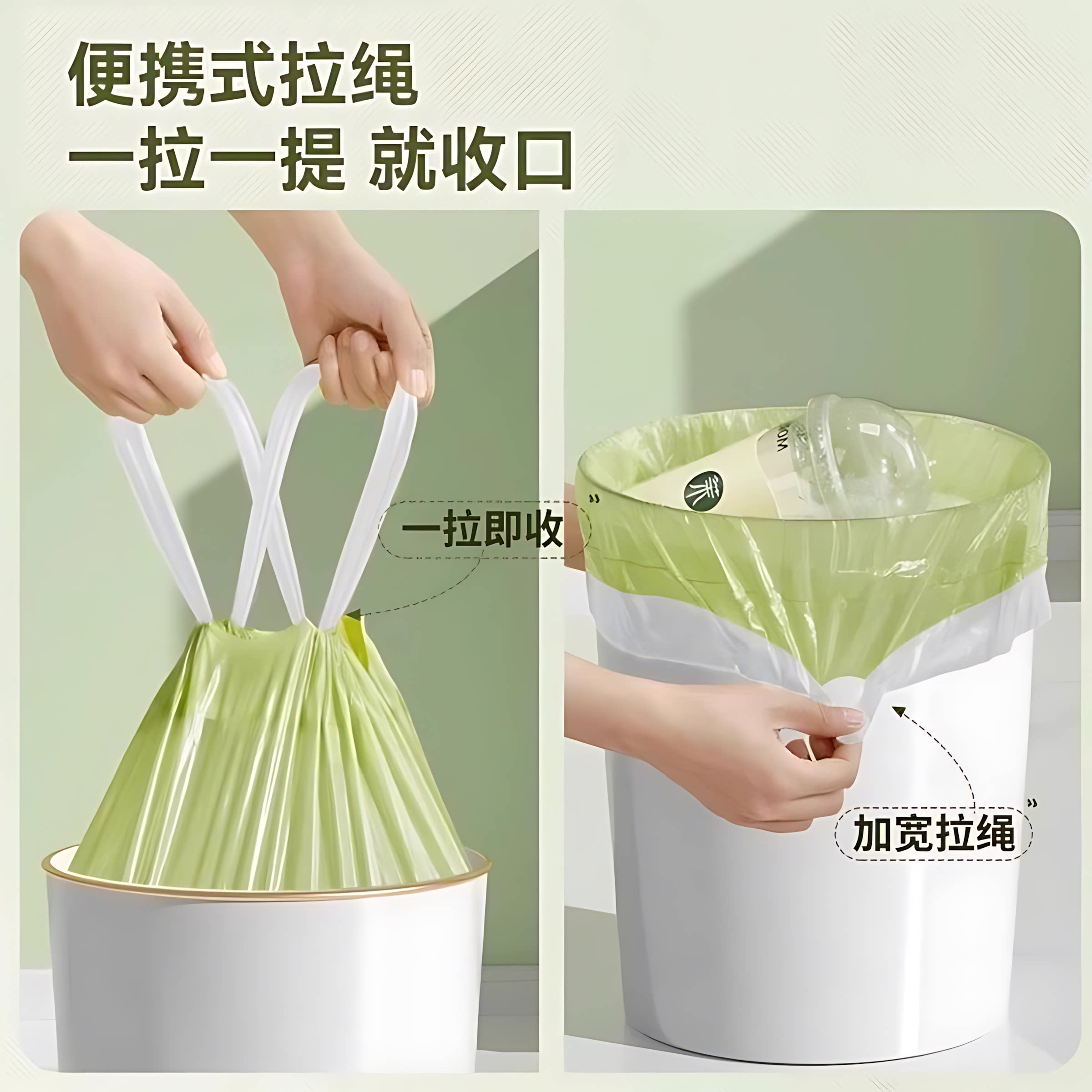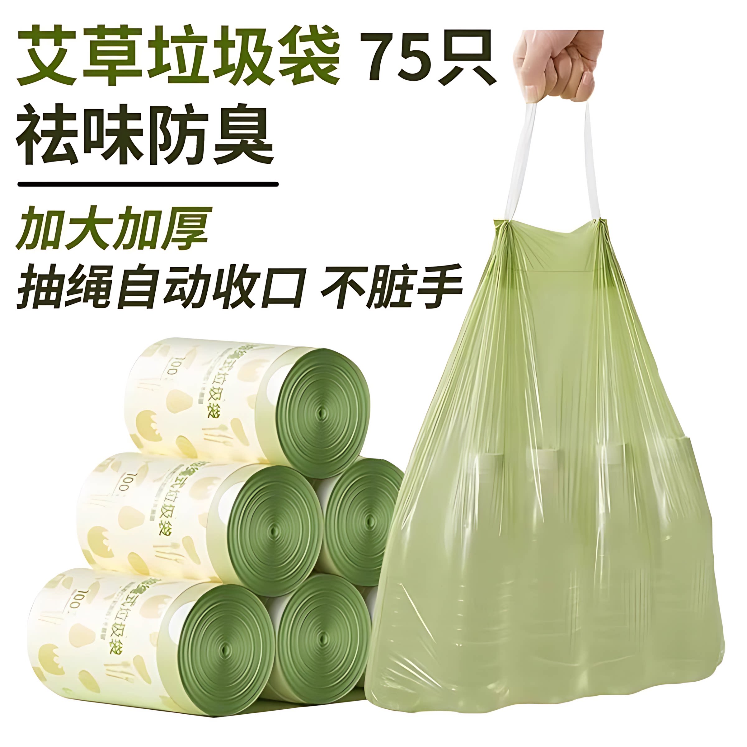 📚 艾草垃圾袋家用加厚手提式抽绳厨房适用耐用大卷塑料袋耐用结实
