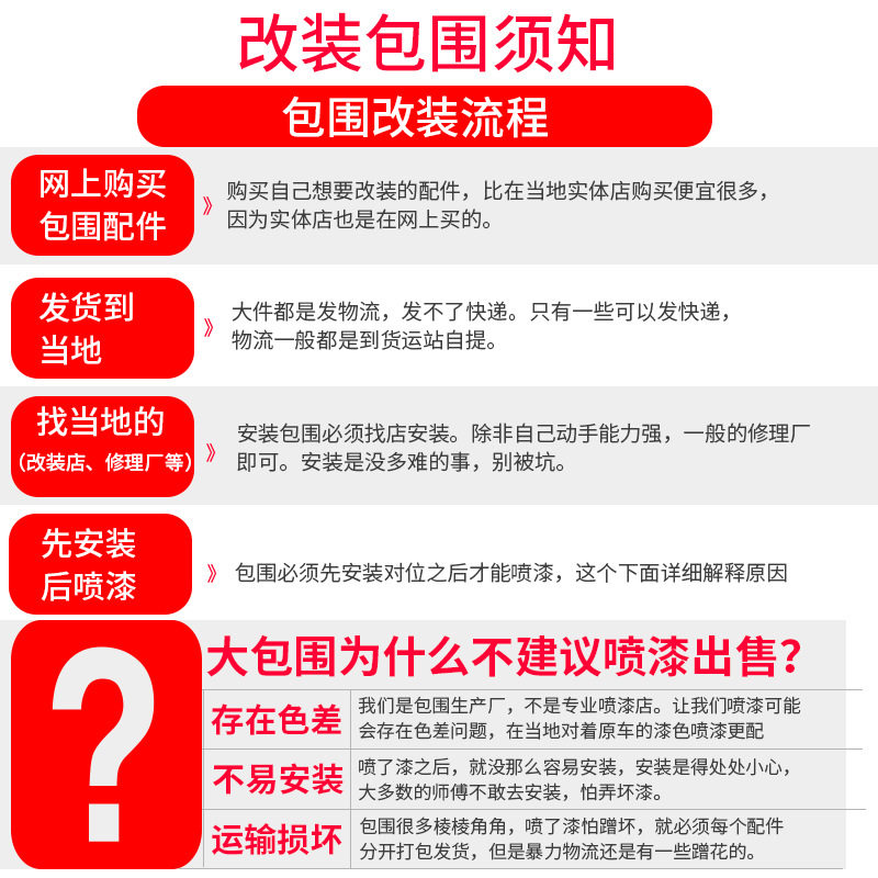 🔥首先,让我们来看看这款专用的前杠、后杠、侧群和中网改装配件。它们不仅提升了车辆的颜值,更是让它在赛道上也能脱颖而出!🔥每一个细节都经过精心设计,让车辆更加动感、霸气。