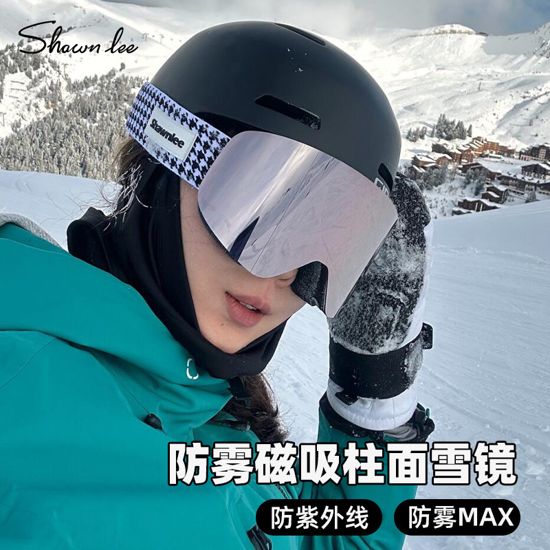 📚 Shawnlee李晨同款冬季防雾防风透气滑雪柱面眼镜女护目镜磁吸雪镜