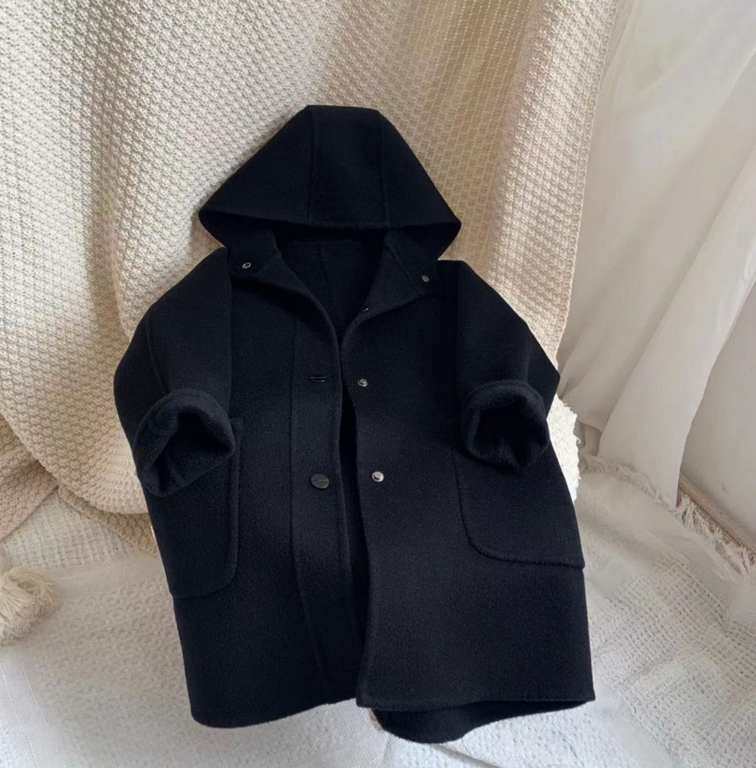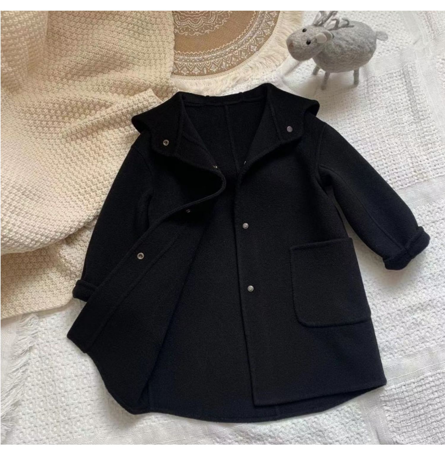 📚 男童女童百搭连帽双面羊绒大衣韩版女童秋冬洋气羊毛呢中长款外套