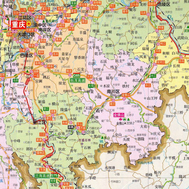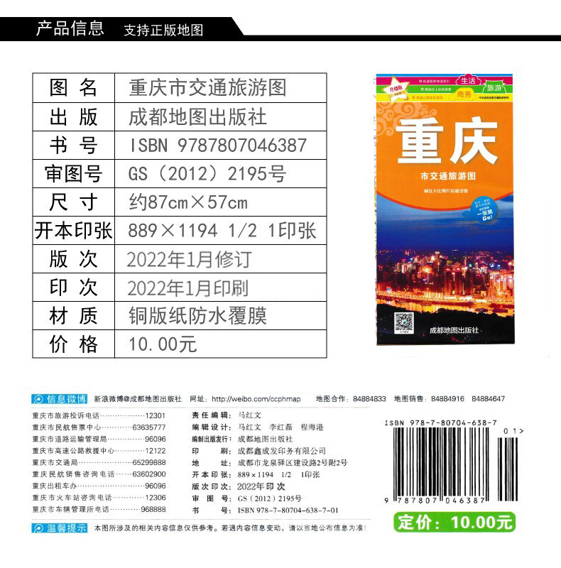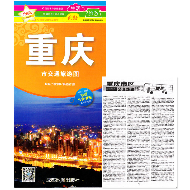 📚 重庆市旅游交通图(撕不烂)地图 重庆主城区地图 双面覆膜防水 约86*58cm 重庆公路里程重庆动车时刻表 购房商贸指南