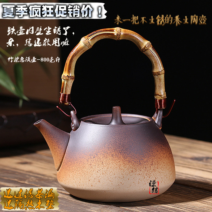 📚 包邮陈信茶具竹提梁烧水壶煮水电陶炉专用陶壶煮茶壶健康陶泥壶