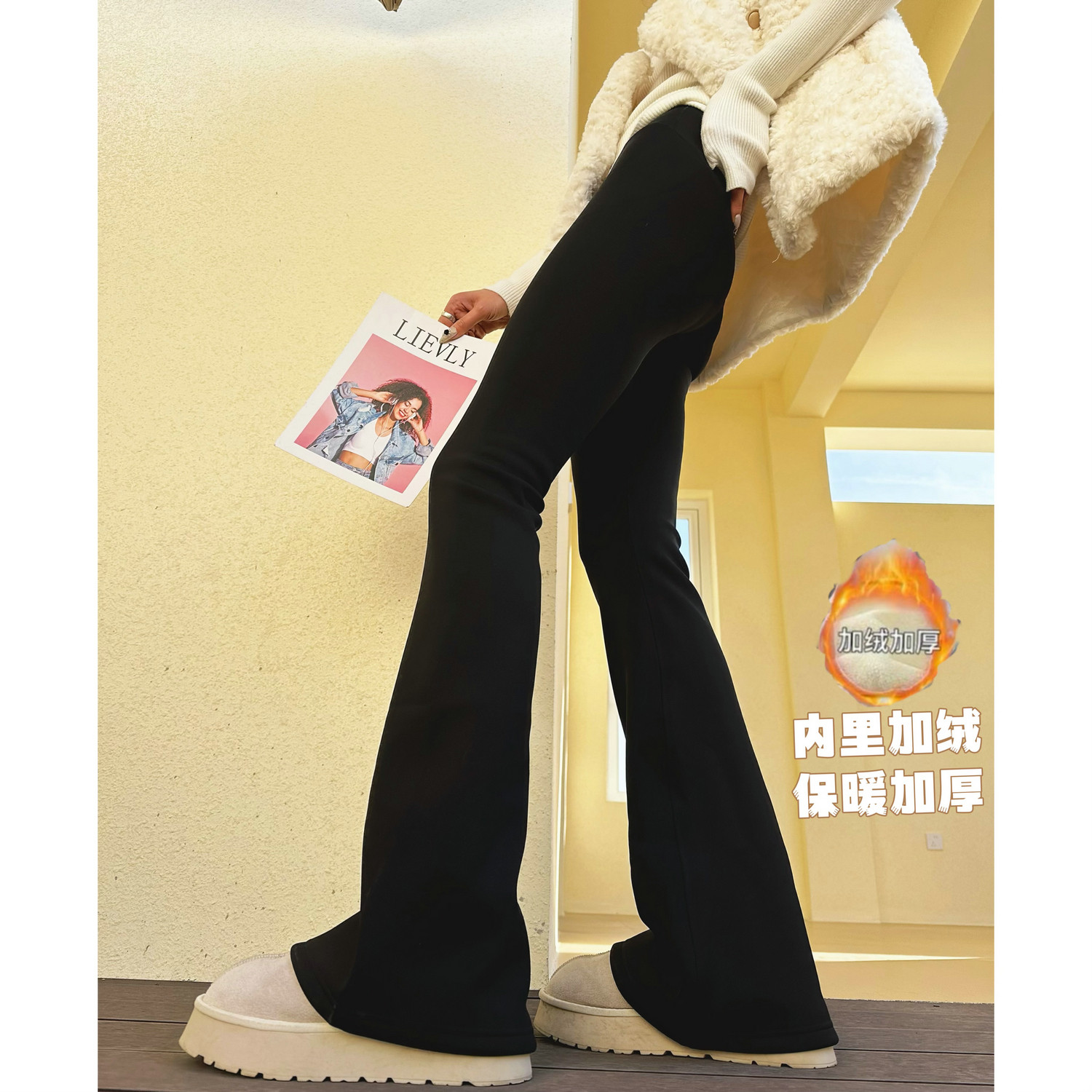#高个子 #秋冬穿搭 #加绒加厚 #黑色微喇裤 #修身瑜伽裤 #休闲喇叭裤 #潮人必备