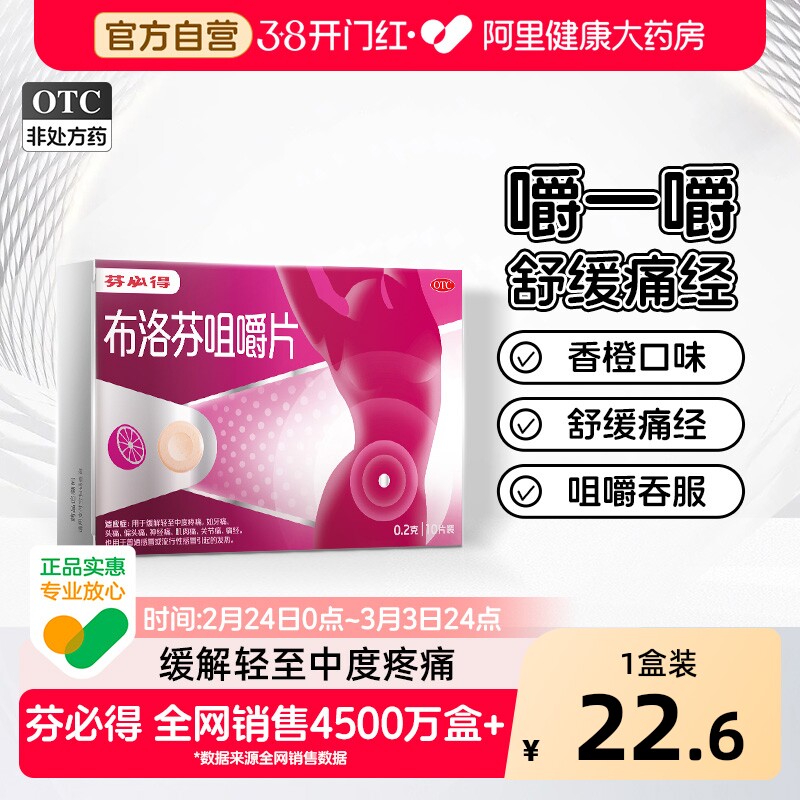 📚 芬必得布洛芬咀嚼片小粉感冒生理痛经止痛药品缓解牙痛药官方月经
