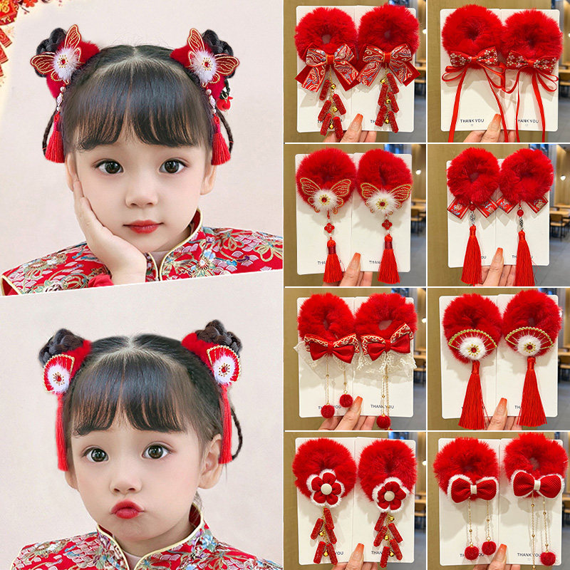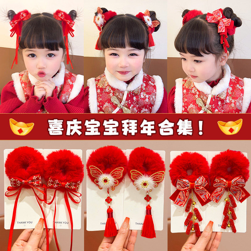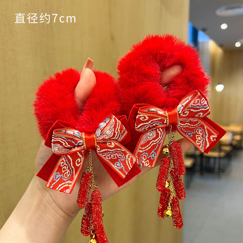 📚 红色头花毛绒发圈女童新年儿童喜庆头饰丸子头发饰高弹力不伤毛发