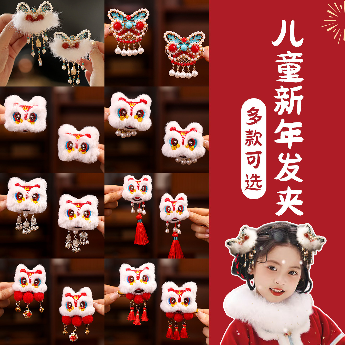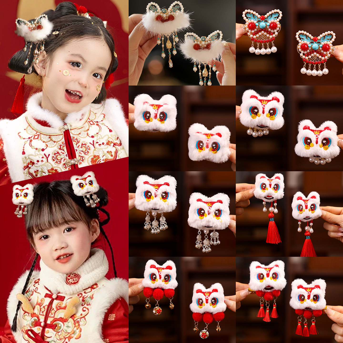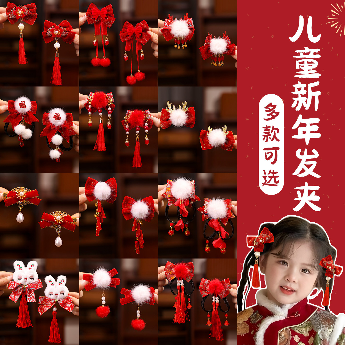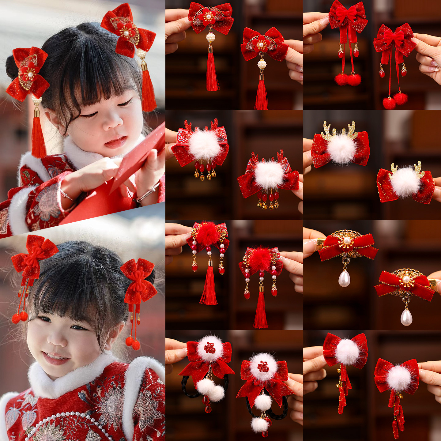 📚 儿童过年红色喜庆发夹女童新年中国风汉服发饰小女孩夹子头饰头花