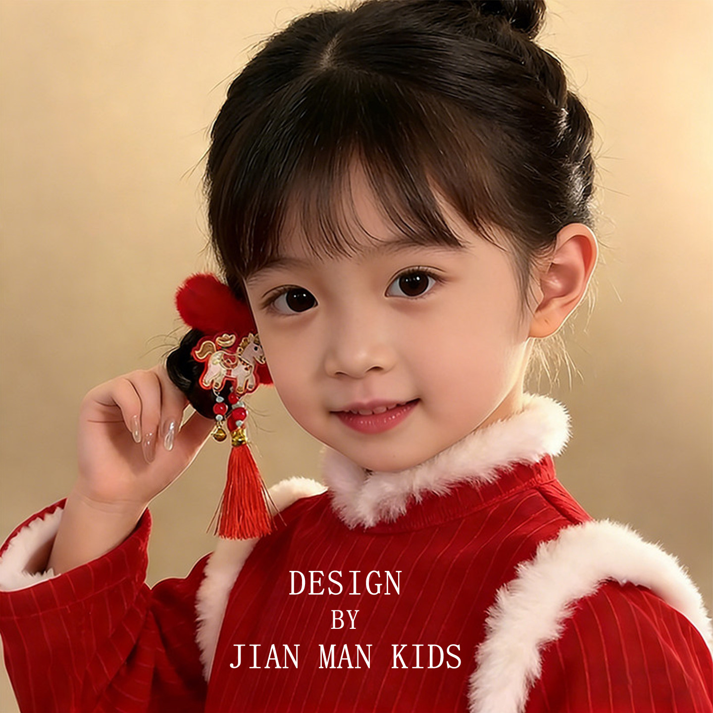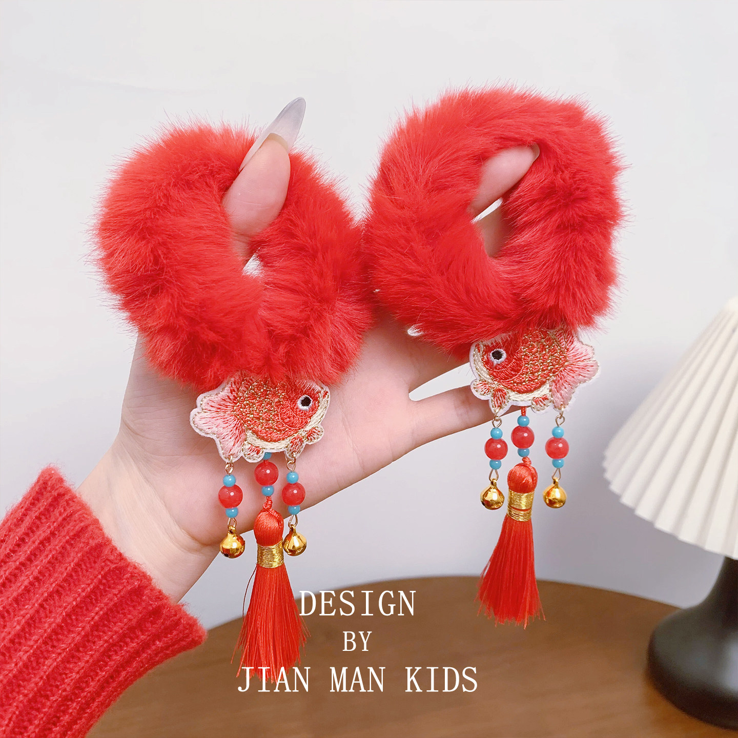 📚 儿童新年头饰可爱小马毛绒发圈头绳女童红色过年流苏头花皮筋发饰