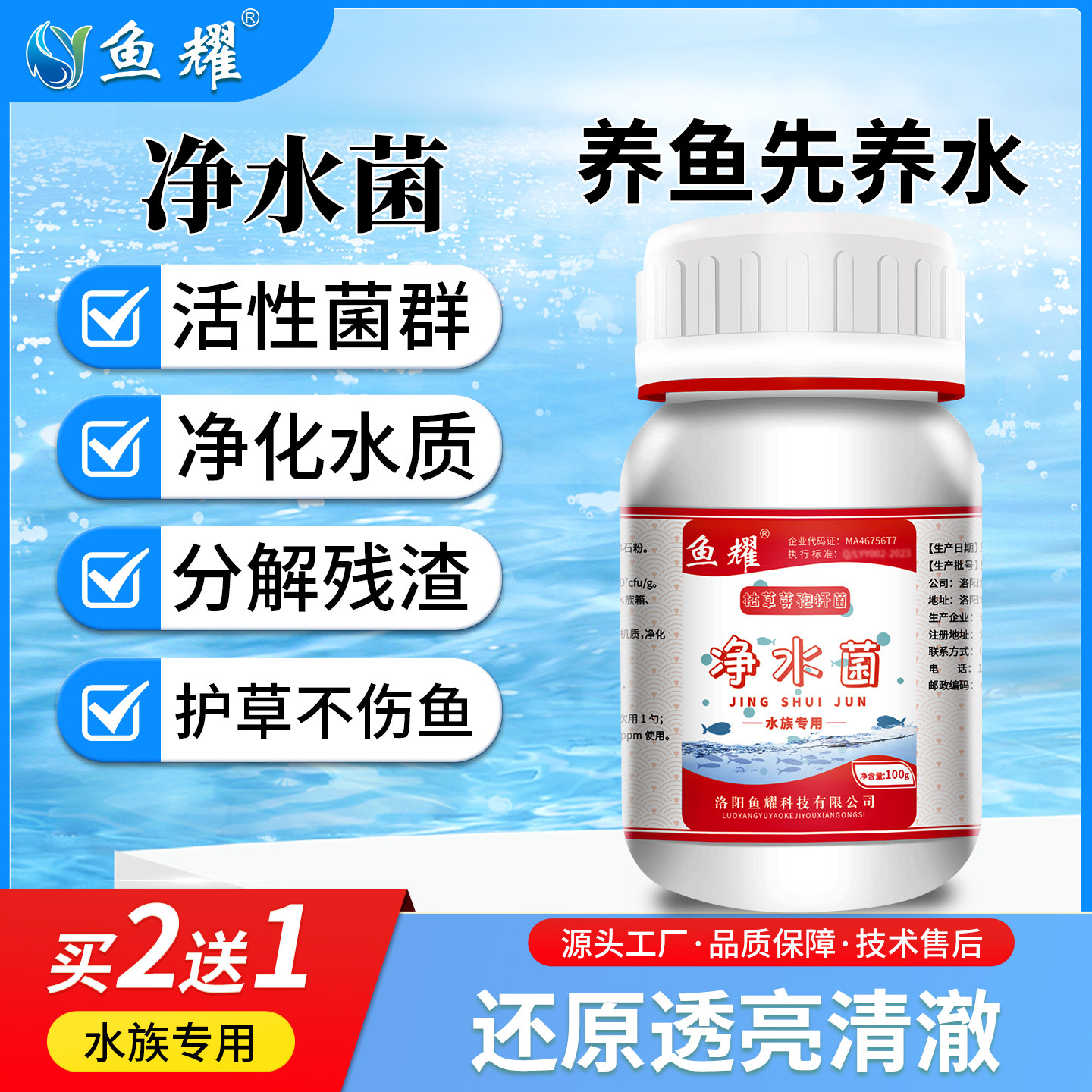 📚 鱼耀净水菌鱼缸专用净水净化水质分解残饵粪便有机质多水产养