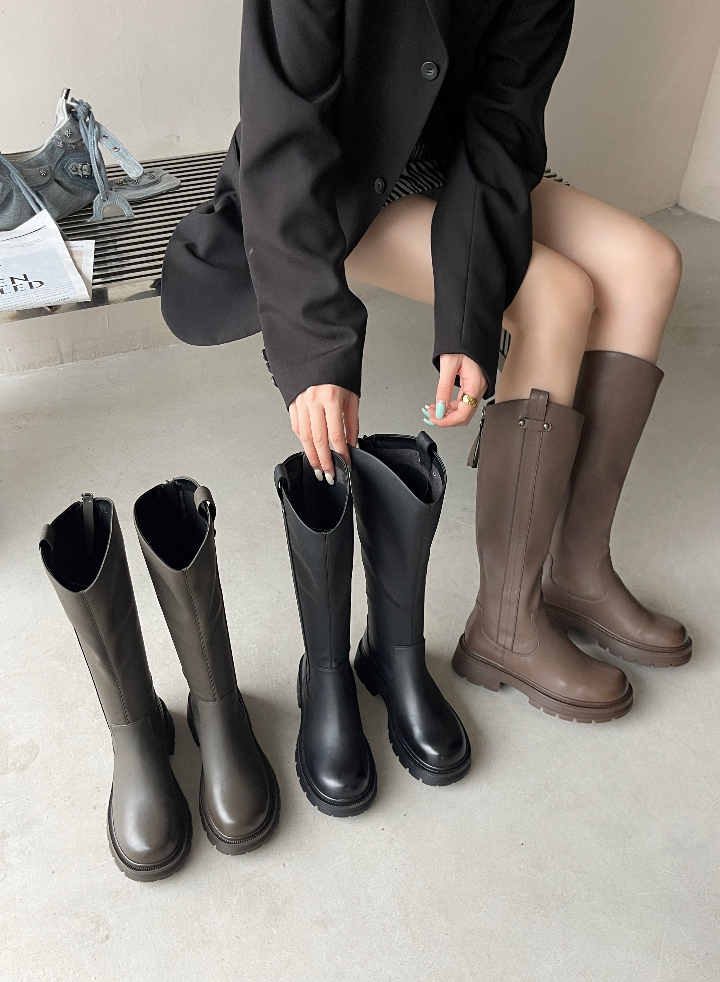 📚 悦薇女鞋过膝长筒马丁靴女2022新款秋冬长统靴秋季英伦风瘦瘦短靴