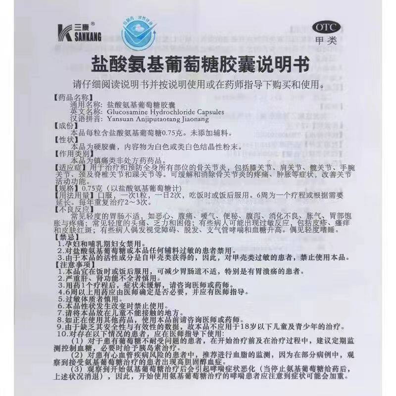 📚 三康盐酸氨基葡萄糖胶囊0.75g*60粒颈椎膝肩骨关节炎诚意
