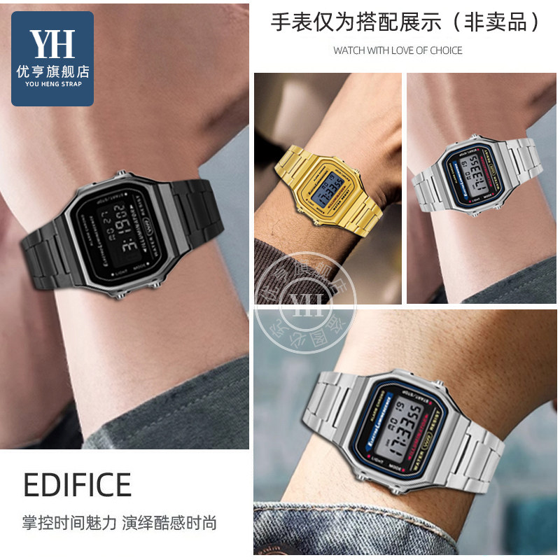 📚 优亨适配casio卡西欧A159W-N1 A158WA A168复古小方块金属手表带