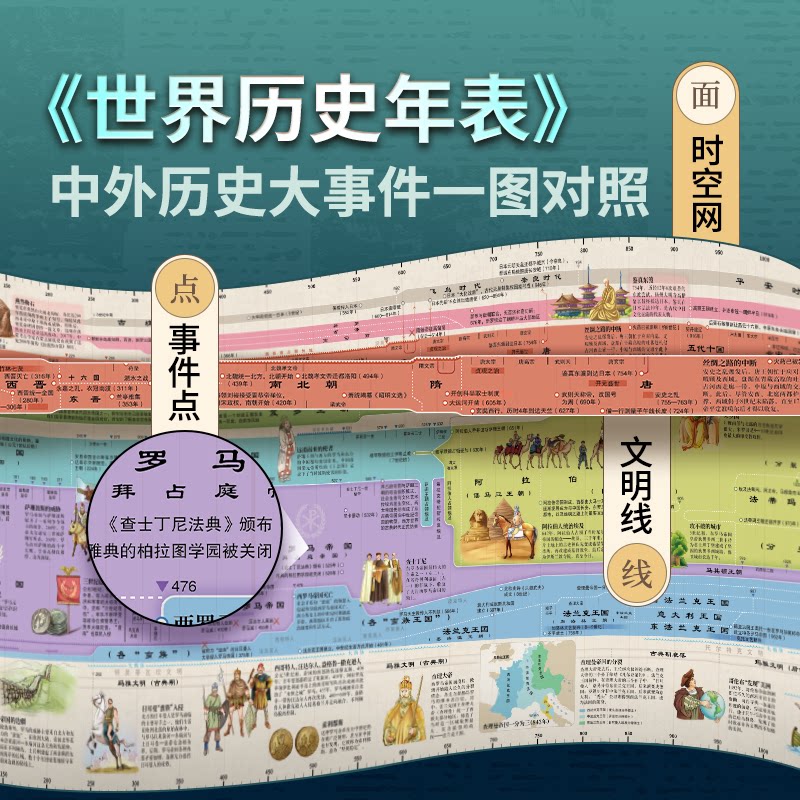 ✨地图墙贴设计独特,色彩鲜明,一眼就能吸引住眼球。无论是古代还是现代,每一个重要的历史事件都被精确标注,清晰可见。📚