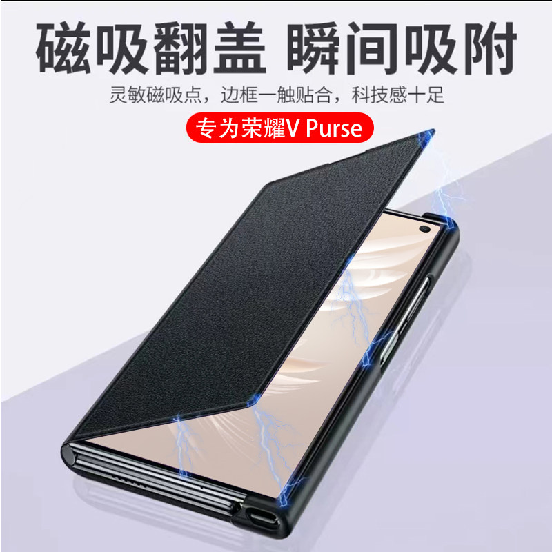 📚 适用荣耀vpurse手机壳真皮磁吸新款Vpurse护屏翻盖全包v purse折叠屏保护套超薄华为honor至臻版官方外壳