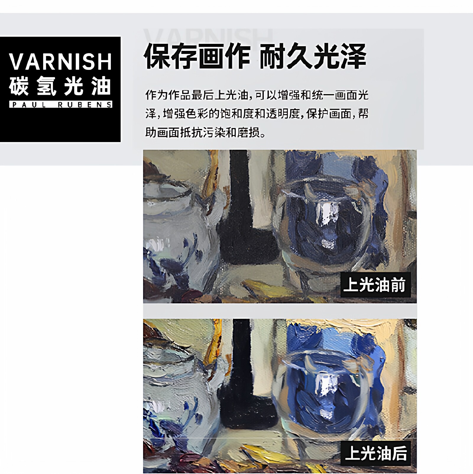 📚 鲁本斯油画上光油丙烯画封层亮光油碳氢保护油提亮衔接光油亚光丙烯颜料防水防尘媒介保护液哑光亮光剂定画液
