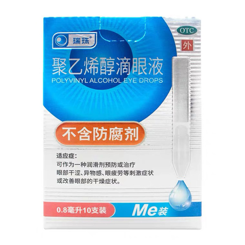 📚 瑞珠滴眼液聚乙烯醇眼药水0.8ml*10支眼部红肿酸痛人工泪液视疲劳
