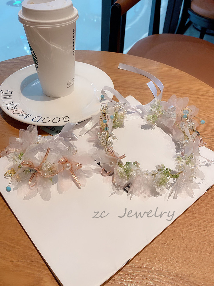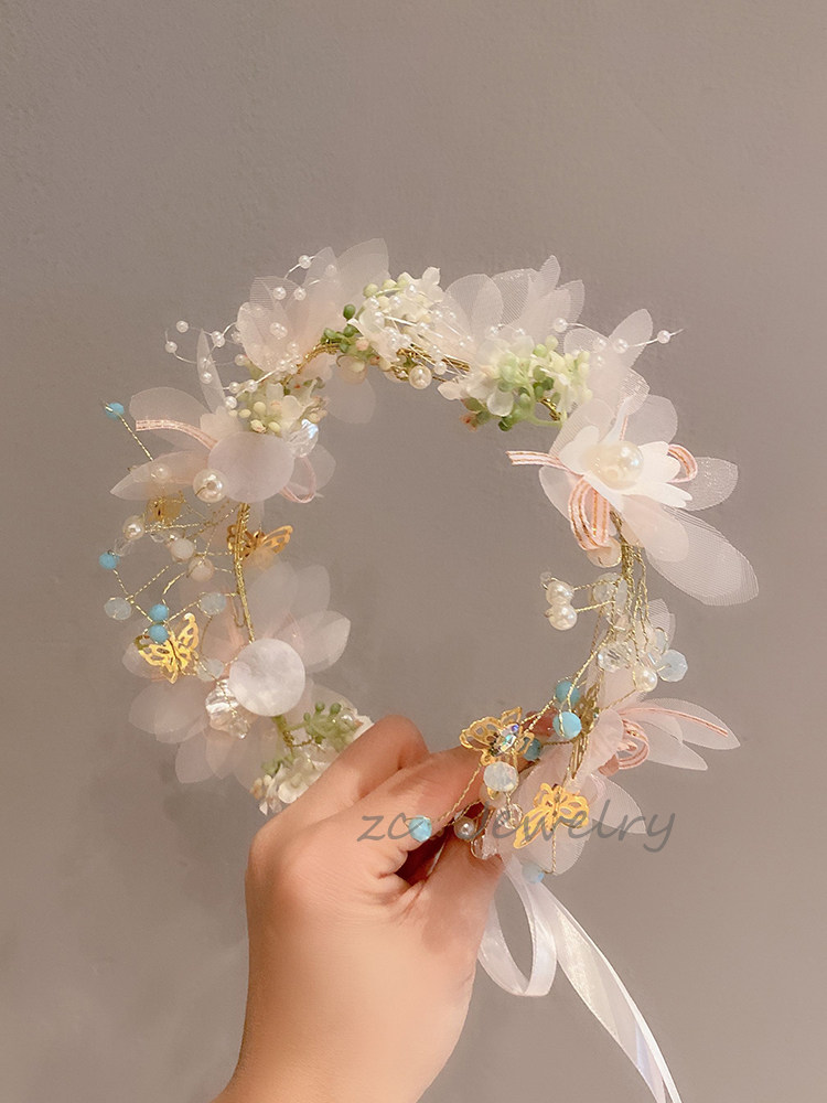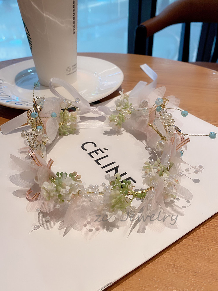 📚 森系仙气飘带流苏发箍花环女甜美新娘头发饰品节日度假拍照道具女