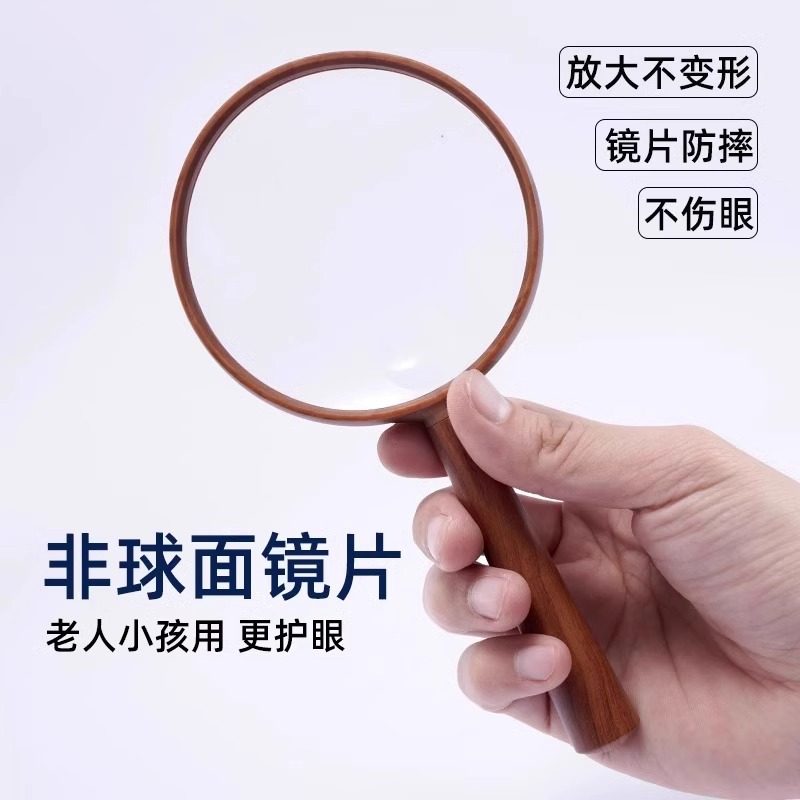 📚 德国非球面高清正品放大镜20倍手持仿实木超轻儿童不伤眼10倍老年人阅读看书看手机维修用学生户外100高倍镜