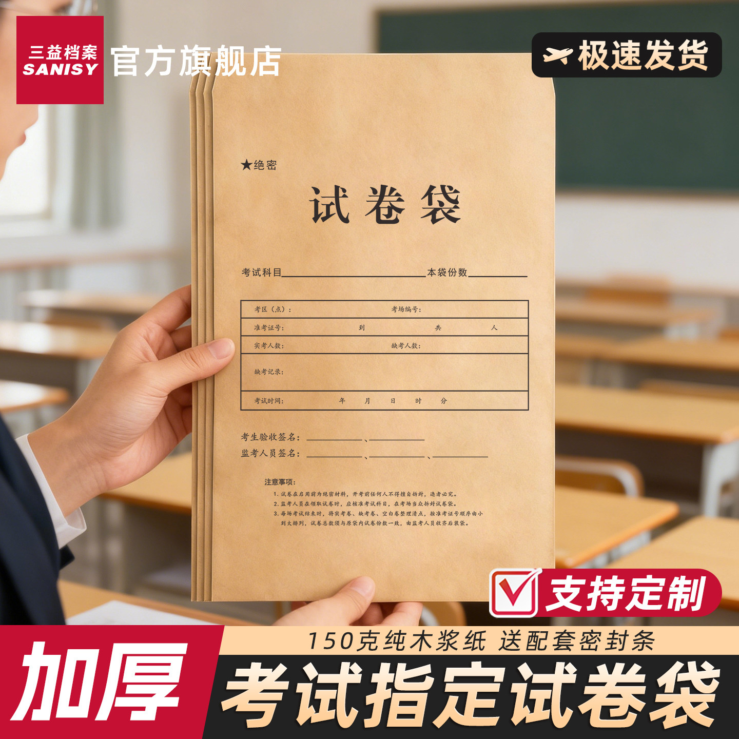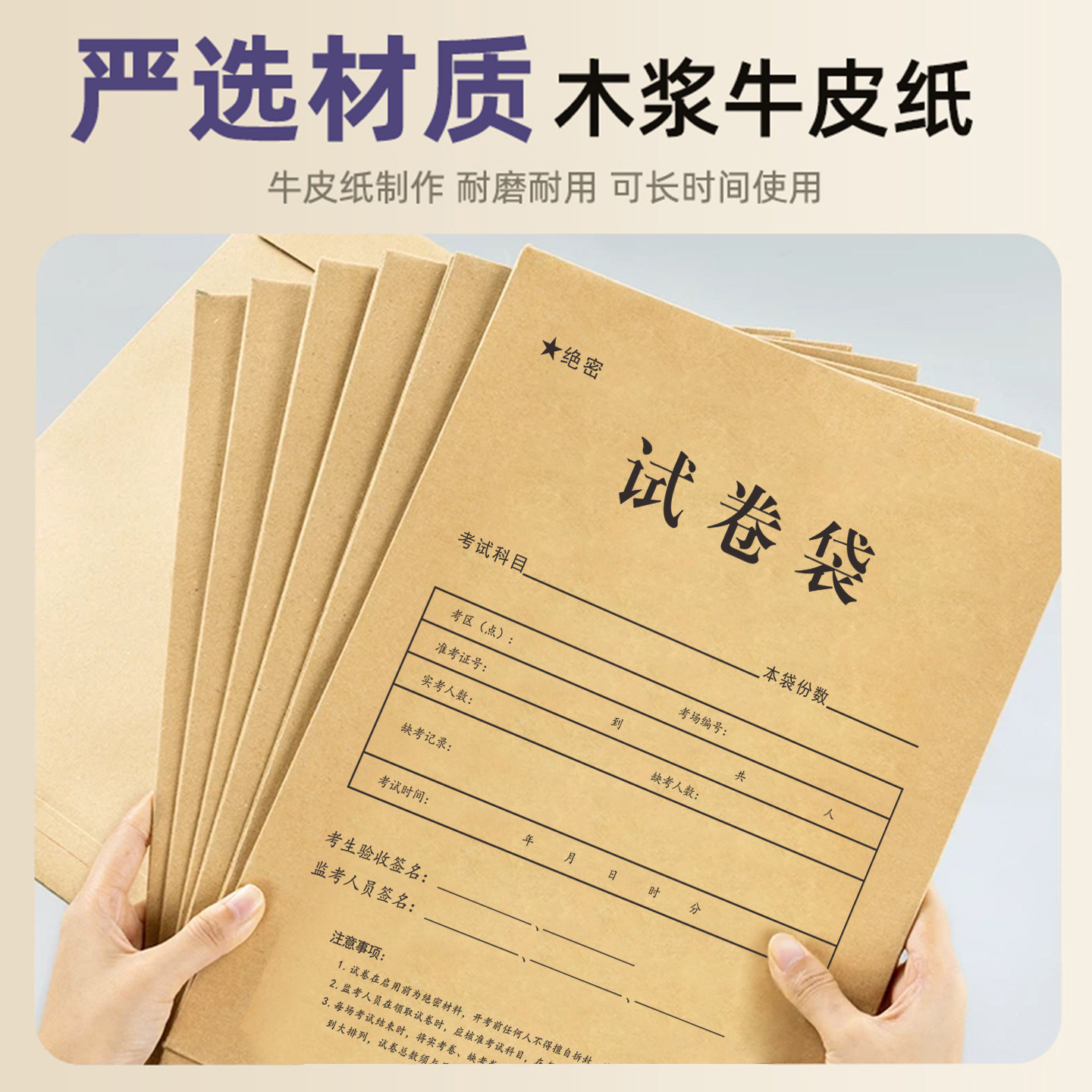 📚 试卷袋牛皮纸A4密封袋文件袋A3加厚双舌答题卡袋公务员考研试题袋送密封条职业技能考试资料袋可定制印logo