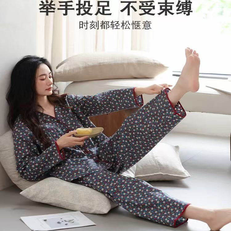 📚 睡衣女春秋季纯棉长袖长裤甜美大码碎花中年妈妈可外穿家居服套装