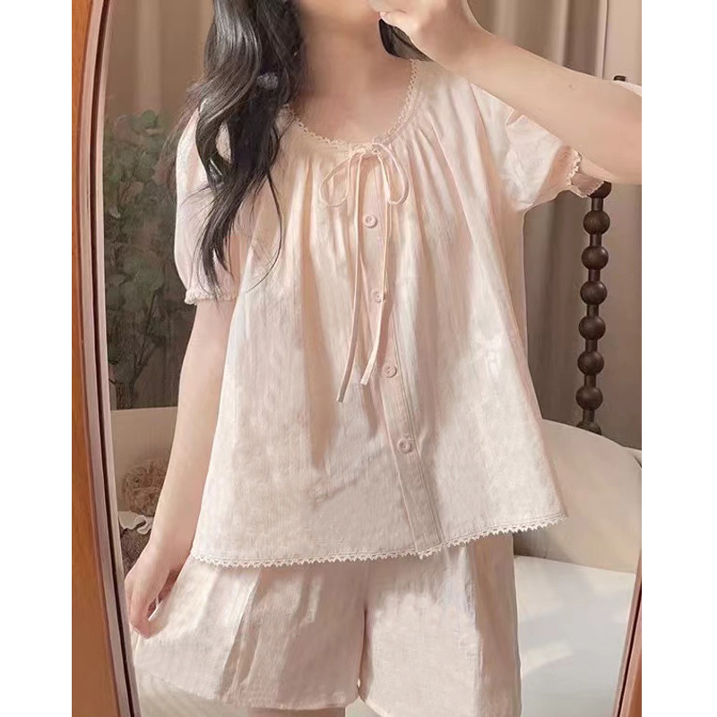 📚 100%纯棉睡衣女夏季短袖甜美公主风开衫休闲薄款可外穿家居服套装