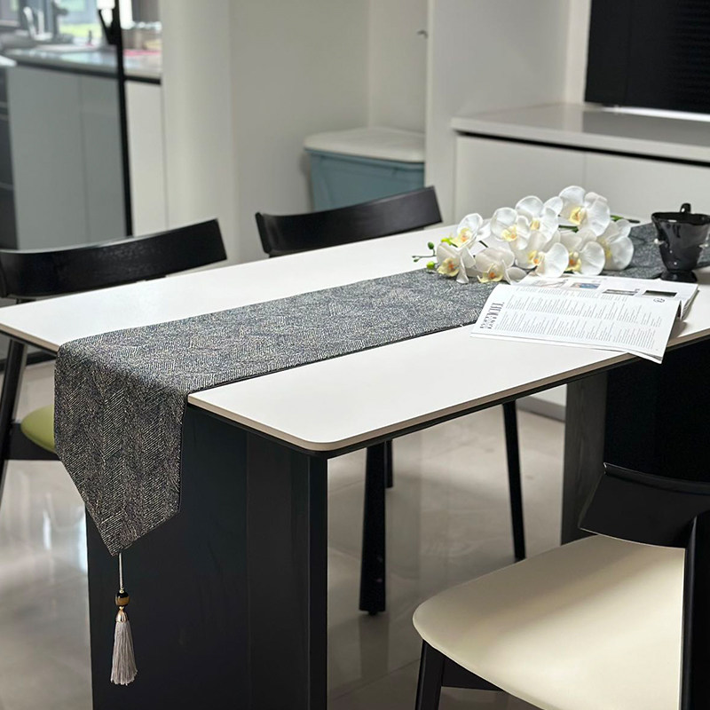 📚 新颖时尚款桌旗黑色高级感轻奢高端布艺茶几长条布盖布鞋柜布定制