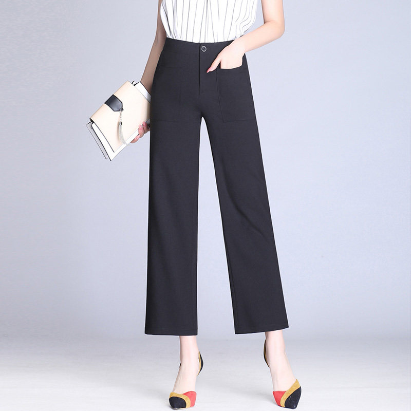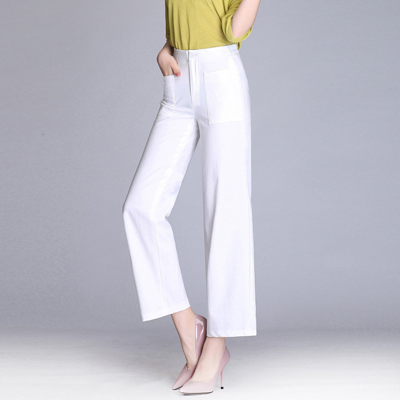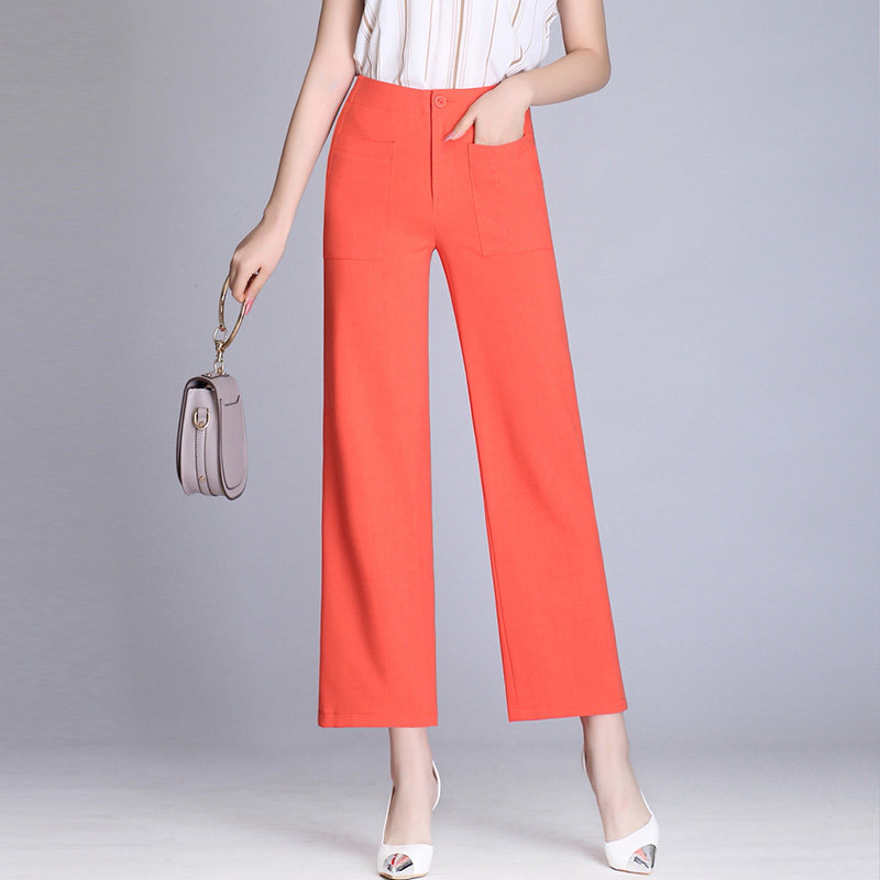 📚 夏季新款麻纱雪纺阔腿裤女韩版垂坠直筒裤子垂感飘逸九分高腰女裤