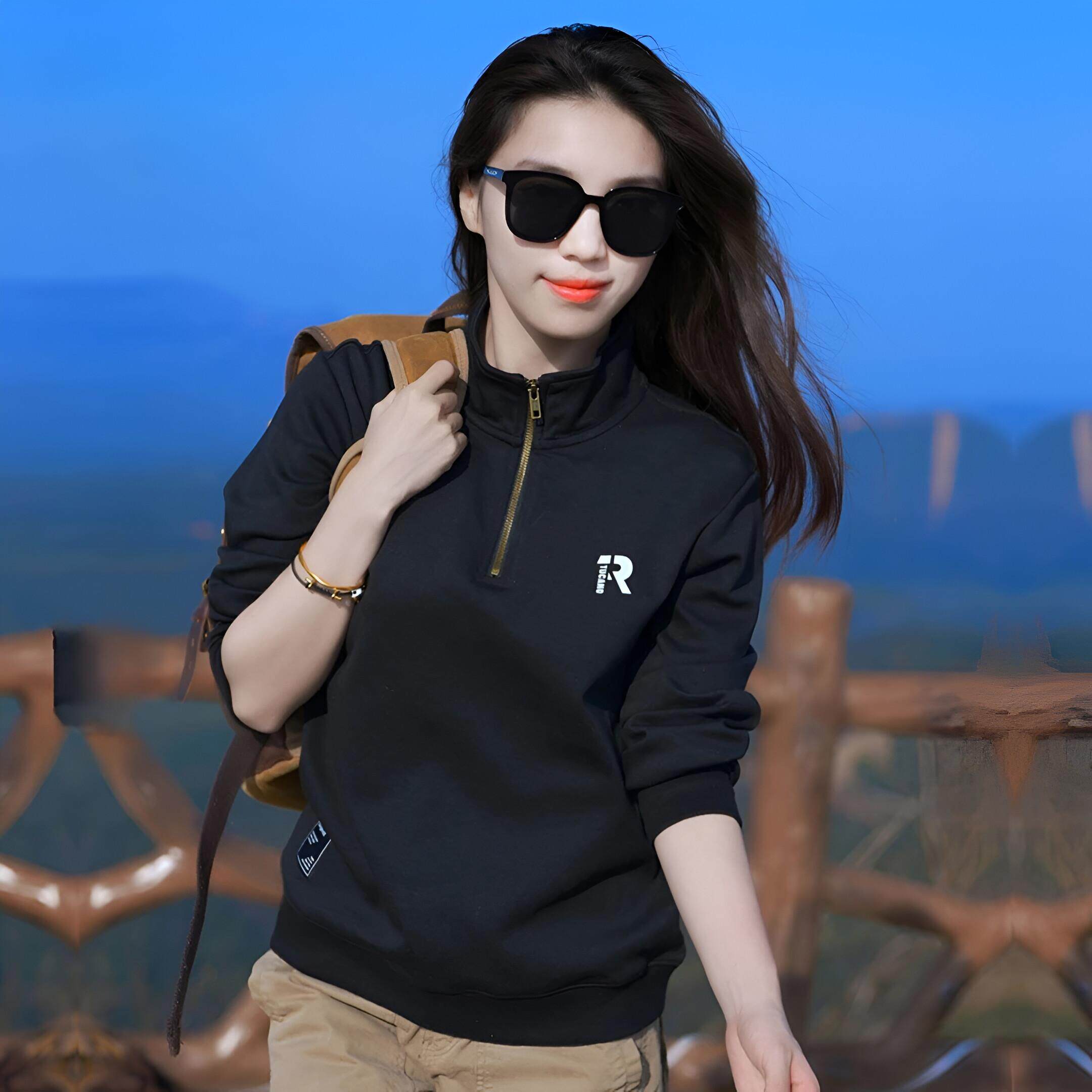 📚 男女同款春秋拉链立领纯色字母卫衣男士秋冬潮流百搭高档休闲上衣