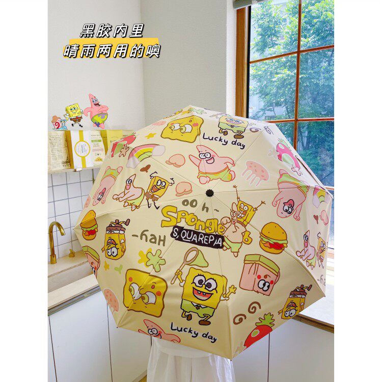 📚 好朋友海绵宝宝派大星太阳伞女晴雨两用全自动雨伞黑胶防晒遮阳伞