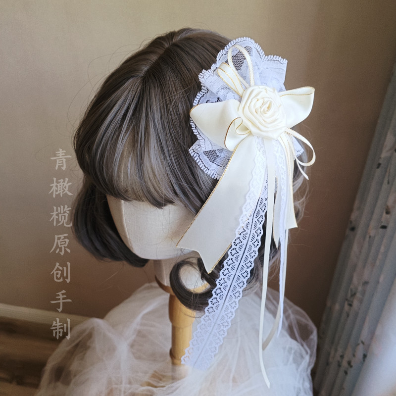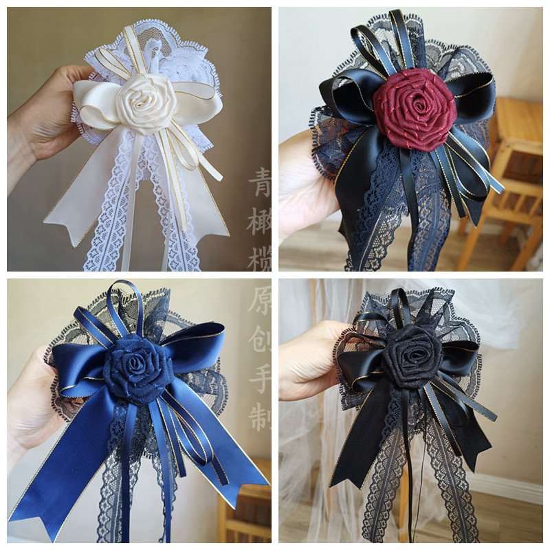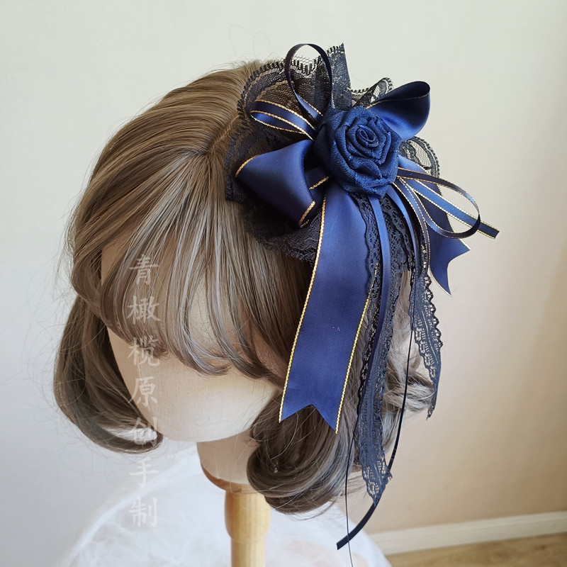 📚 原创洛丽塔头饰lolita花丸暗黑红哥特花朵发饰花嫁小礼帽边夹胸针