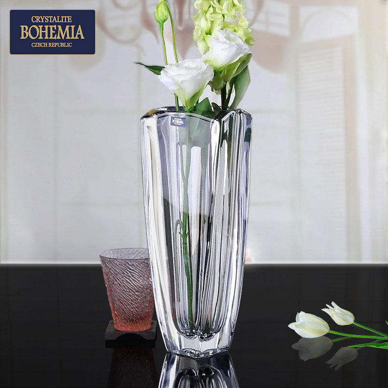 📚 捷克进口水晶玻璃花瓶北欧风格家居饰品摆件客厅插花简约干鲜花瓶