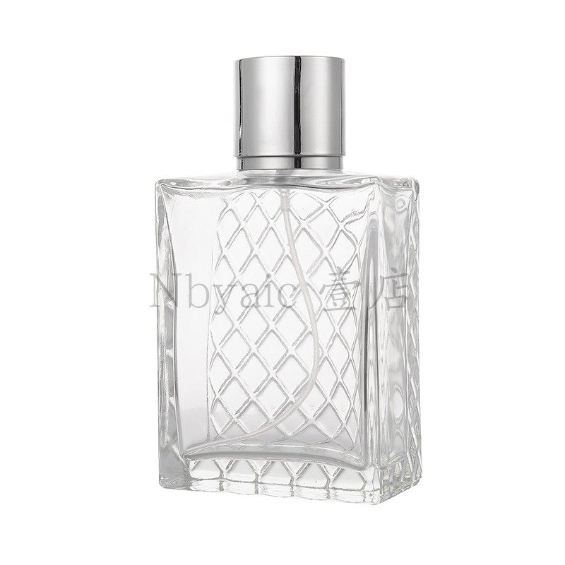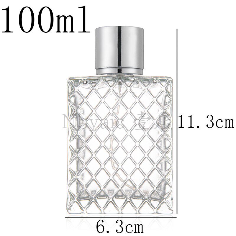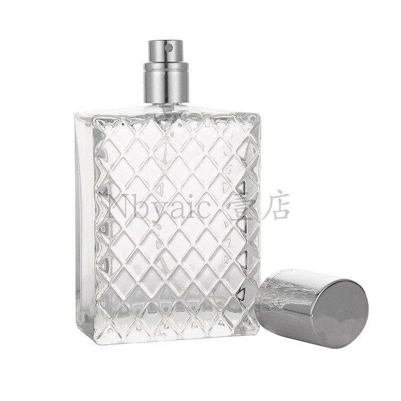 📚 现货供100ml四方扁瓶格子形状玻璃瓶喷雾瓶香水瓶分装瓶大瓶空瓶