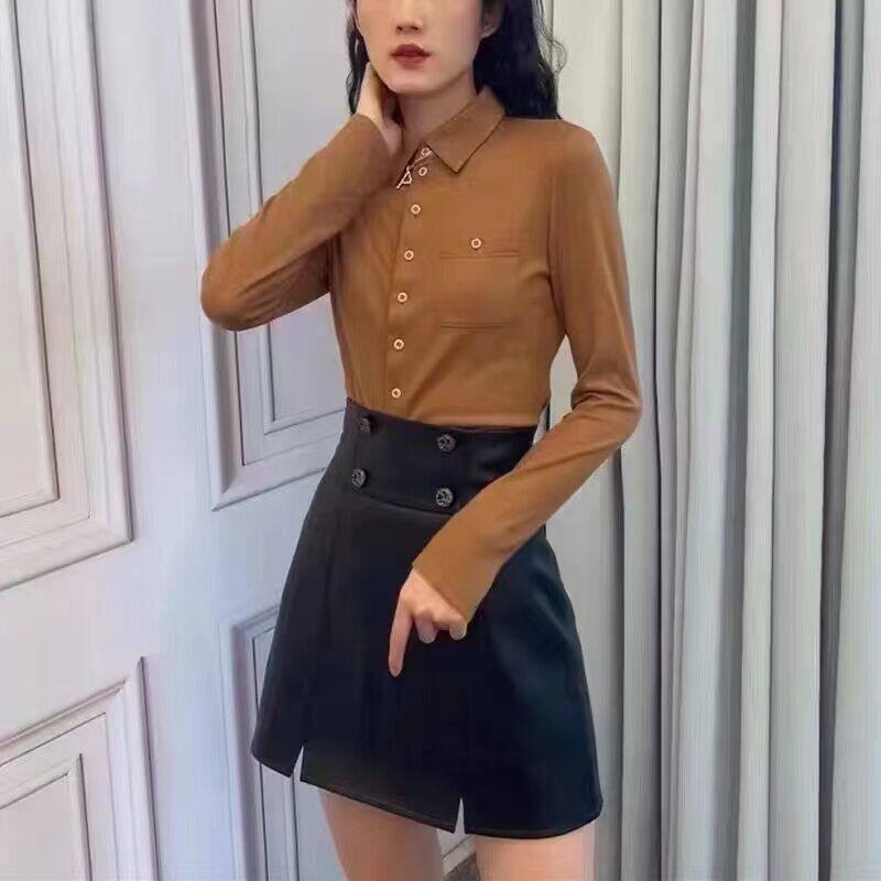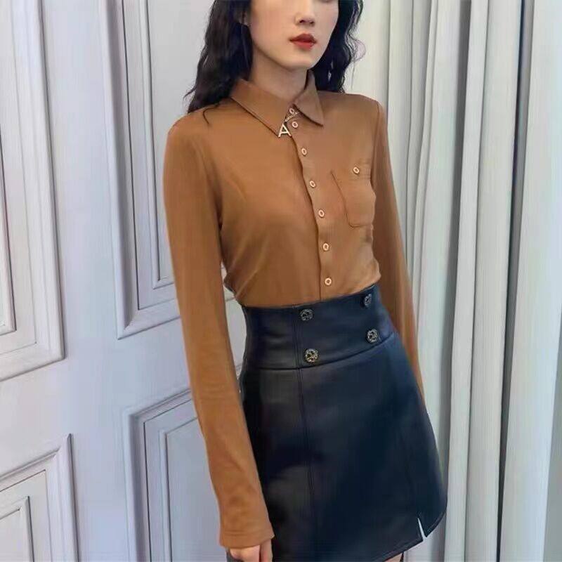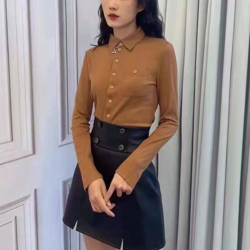 📚 正品哥家新新款2025春秋polo领设计感纯色职业羊毛打底衬衣女