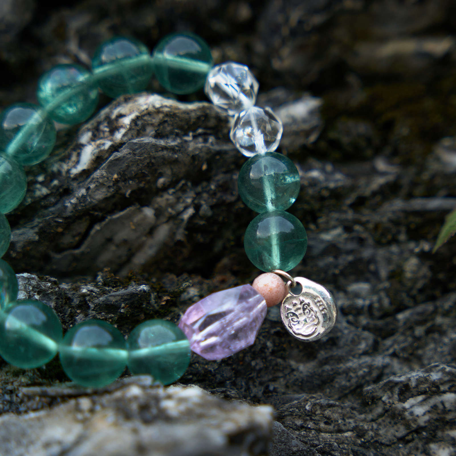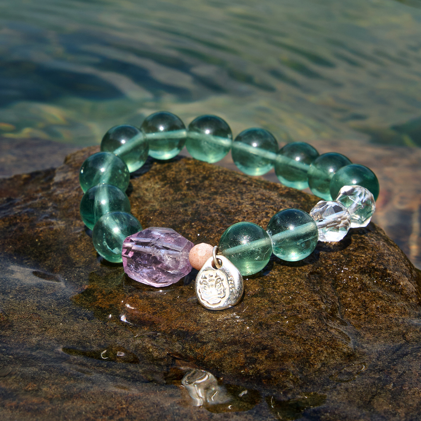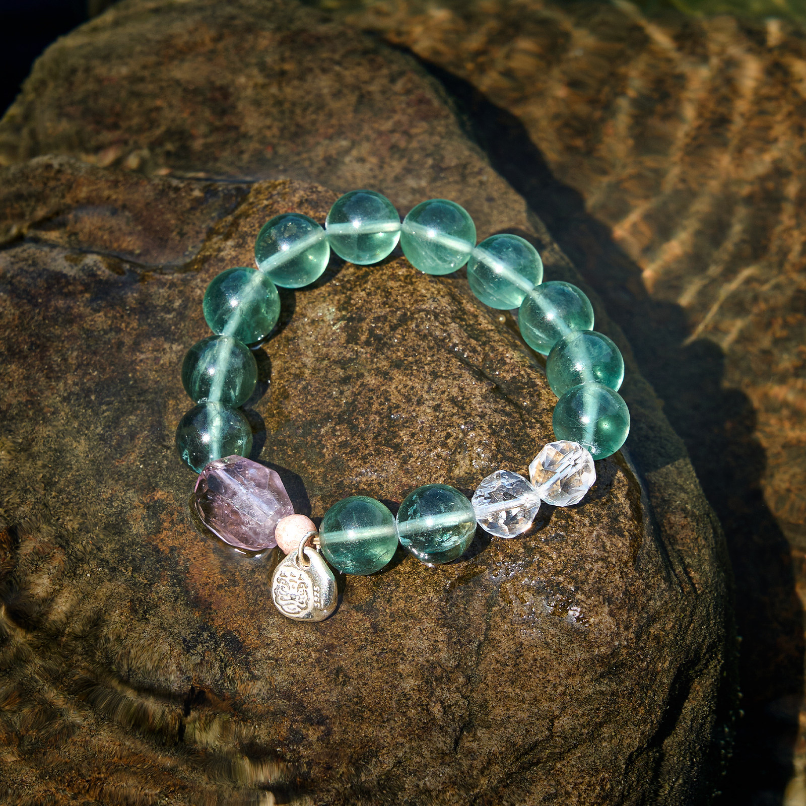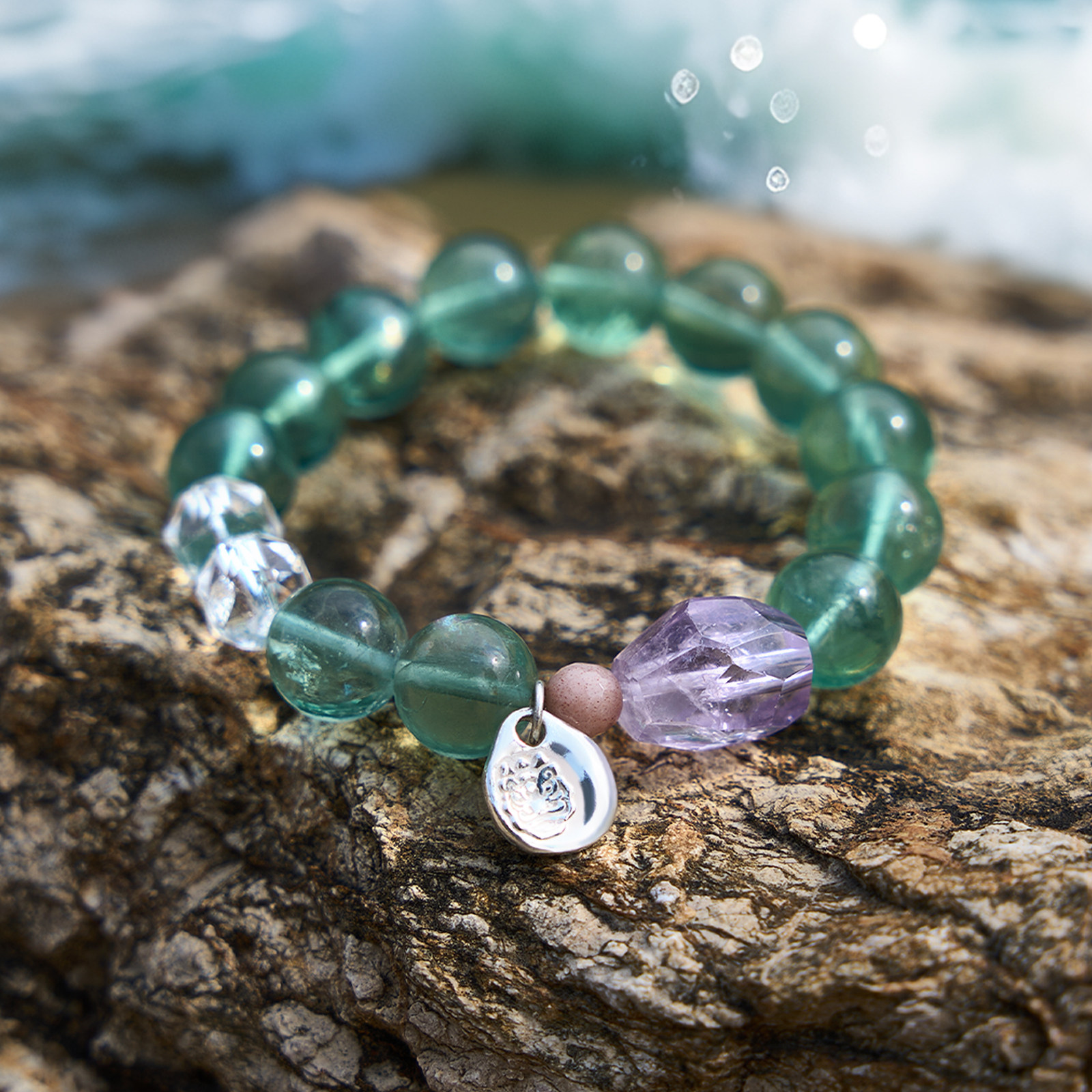 📚 三坛星石【碧波】智慧/勇气/疗愈 天然紫水晶绿萤石情侣手串手链