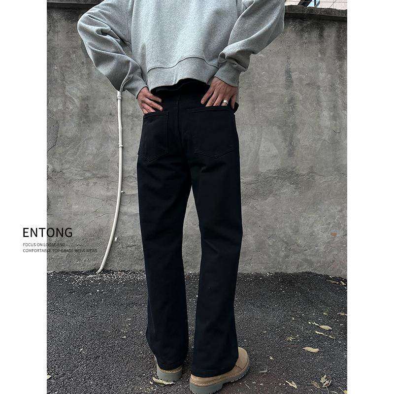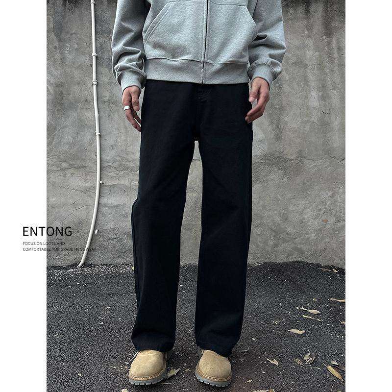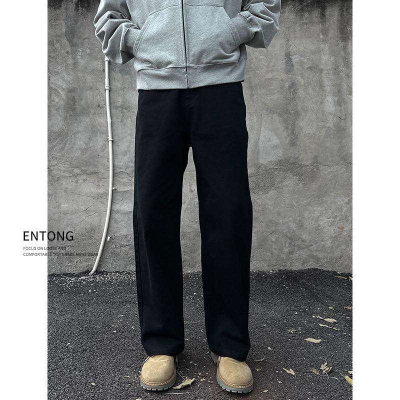 📚 Entong美式高街vibe复古黑色牛仔裤男生百搭痞帅宽松直筒显瘦长裤