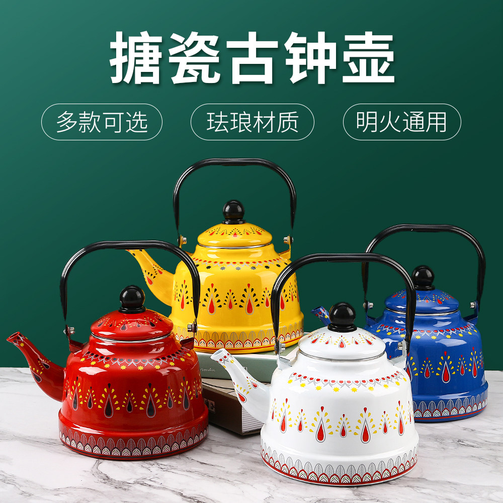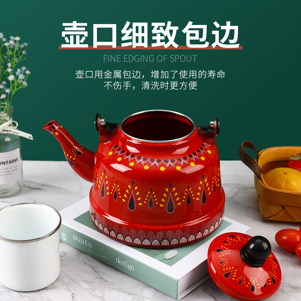 📚 新疆餐厅珐琅搪瓷煮奶茶壶凉开水壶烧水壶饭馆家用茶水壶电磁炉用