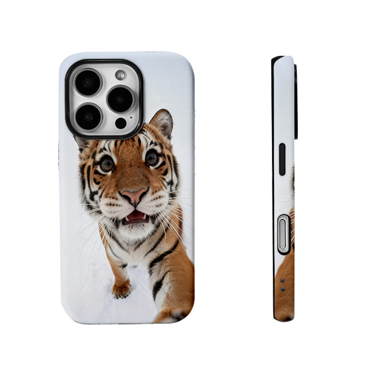 📚 雪地呆萌小老虎的凝视菲林二合一手机壳适用苹果17nova14华为p70mate60小米15opporen14ovivo荣耀300iPhone16