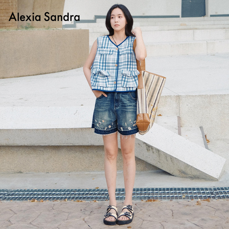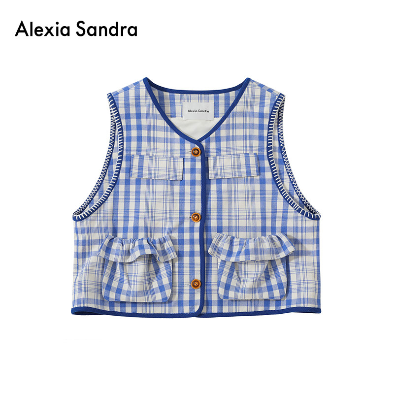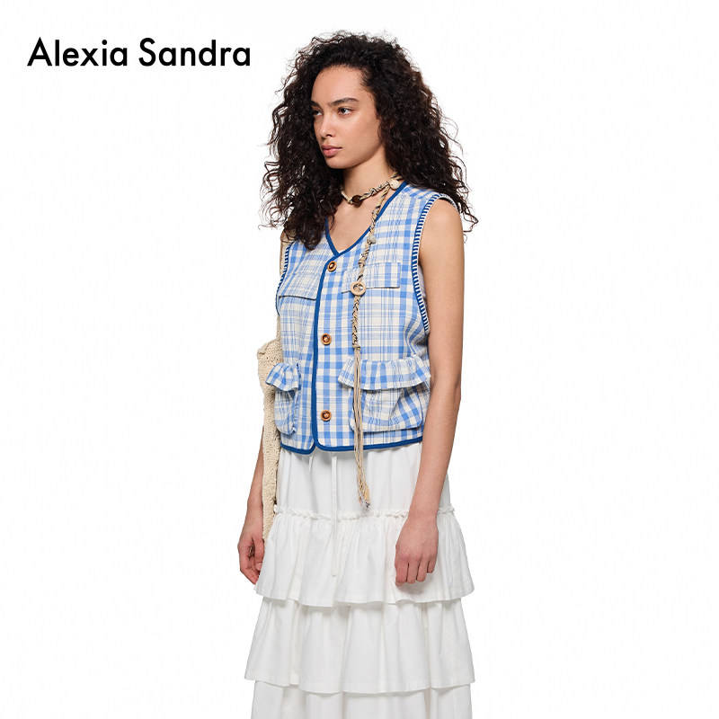📚 Alexia Sandra2025春夏新款叠穿烘焙饼干纽扣刺绣边格纹马甲外套