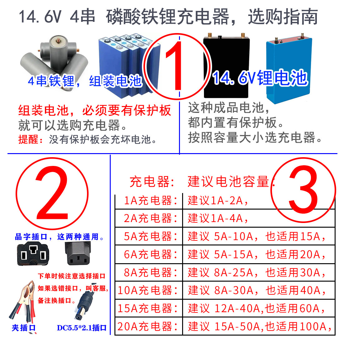 📚 14.6V磷酸铁锂充电器1A2A5A8A10A汽车启动应急电源dc5.5和夹子款