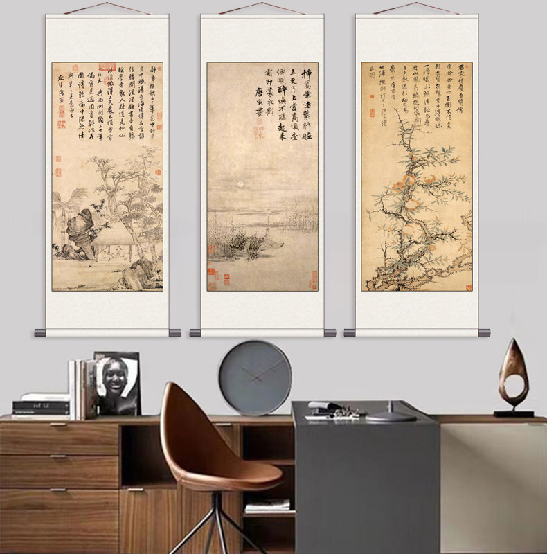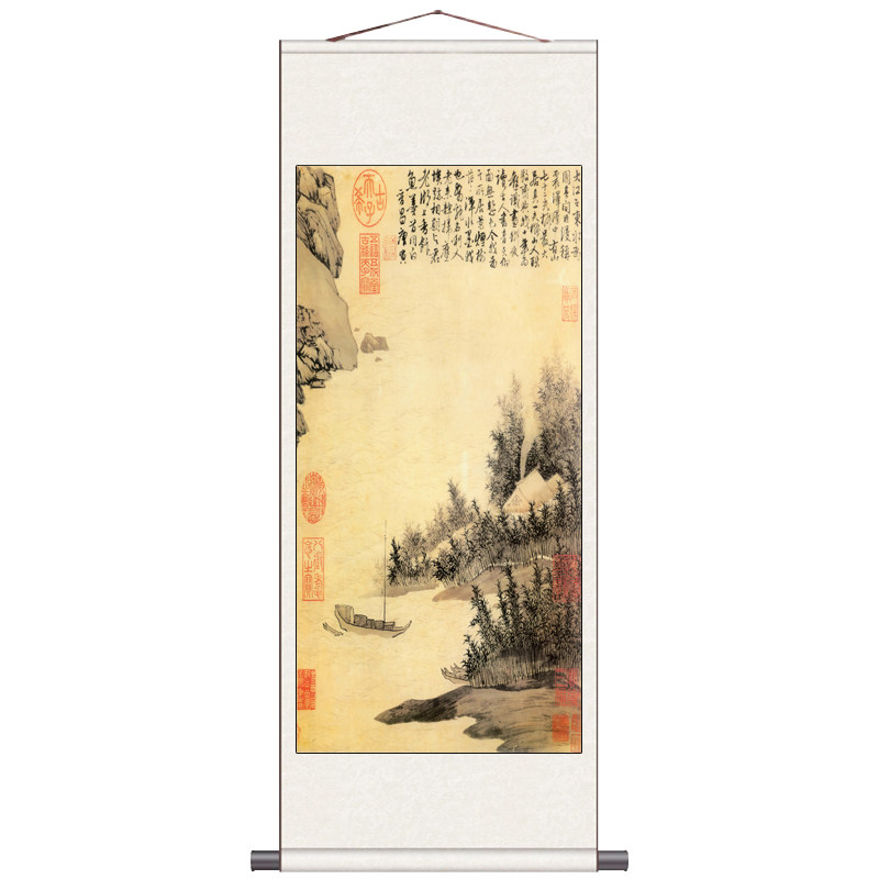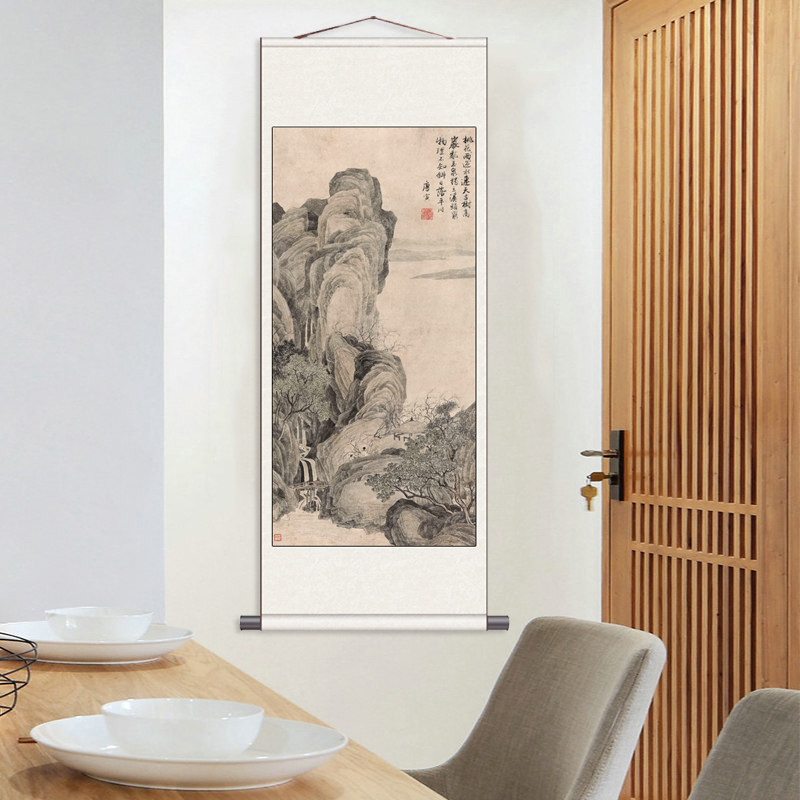📚 唐寅山水字画唐伯虎名家字画卷轴画风水装饰画明代挂画仿古书房画