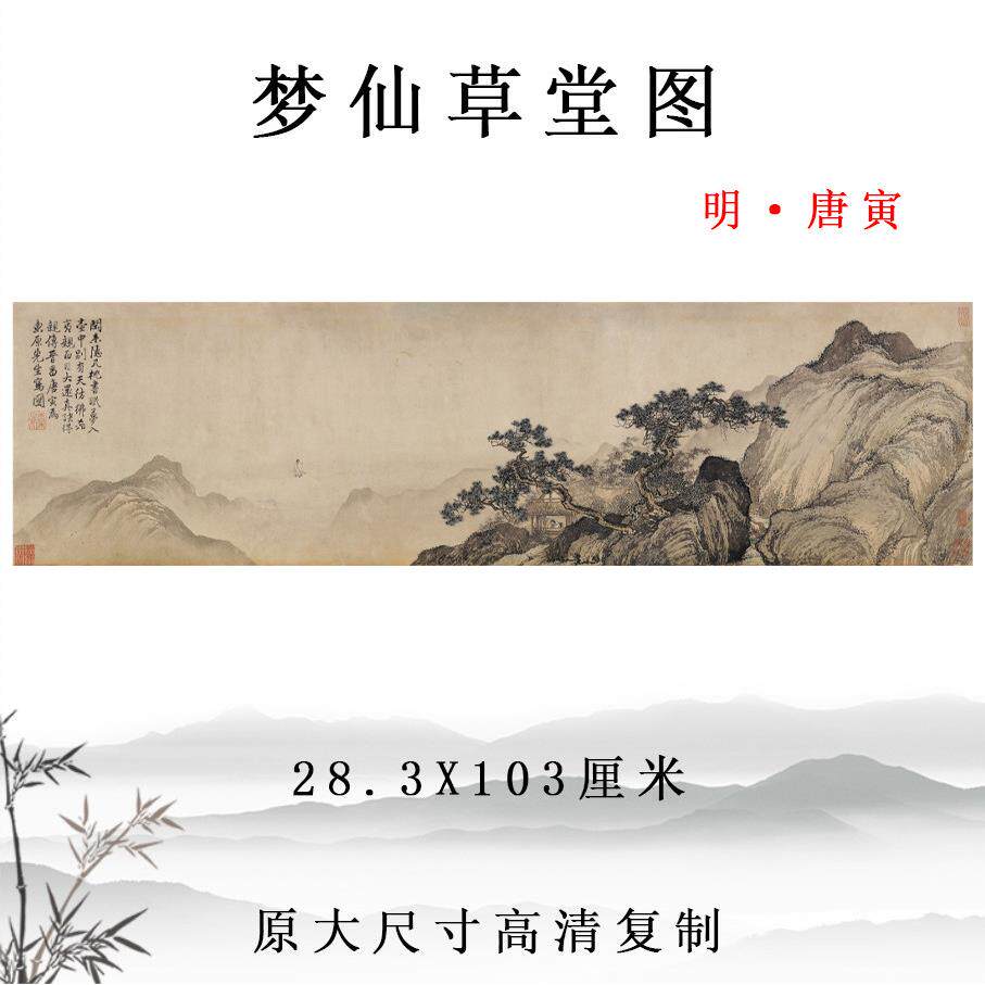 📚 唐寅 梦仙草堂图 古代名画山水人物画横幅挂画装饰画彩色临摹底稿
