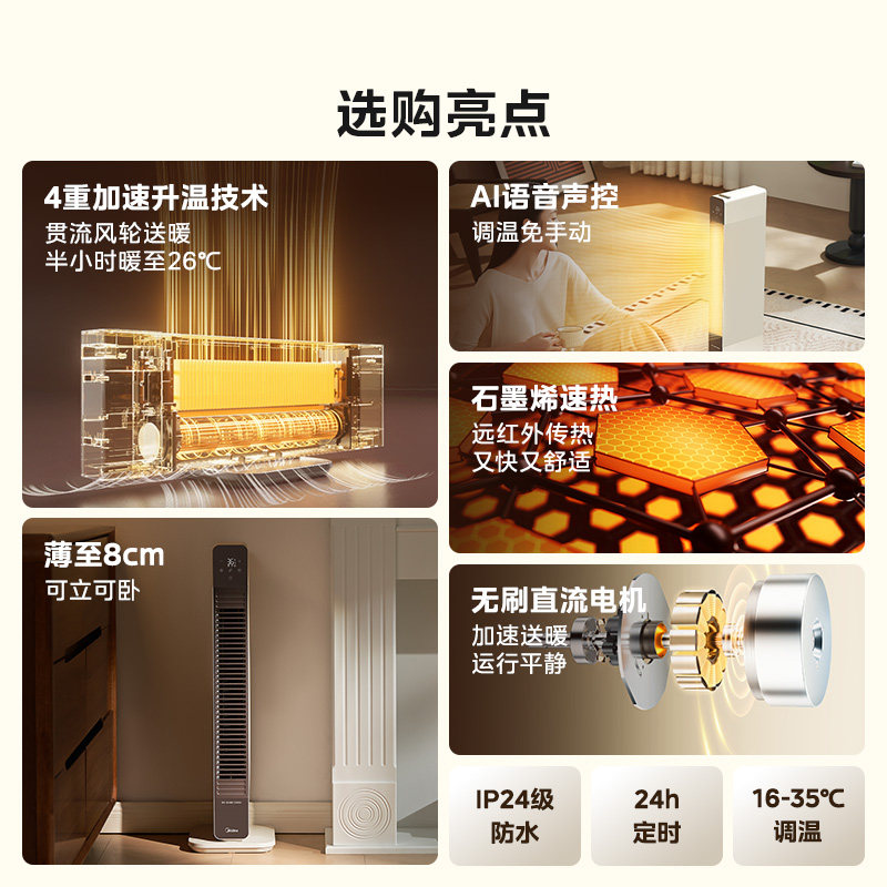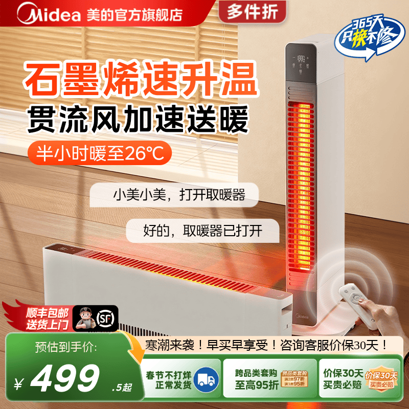 📚 [多地次日达]美的随变暖取暖器踢脚线风暖速热家用暖风机电暖防水