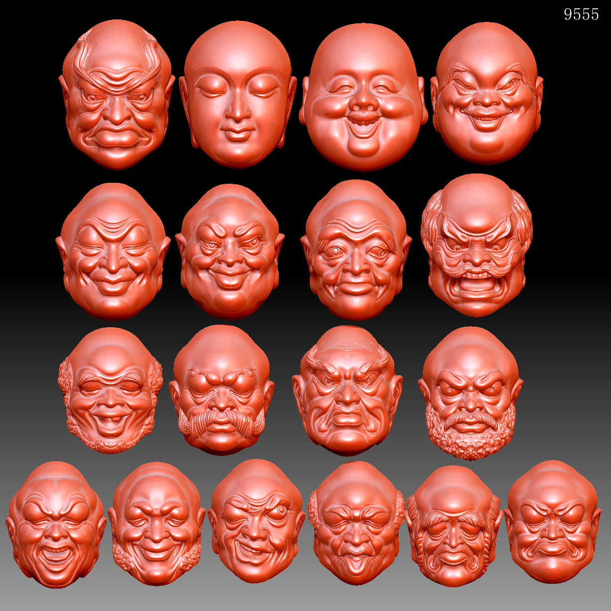 📚 9555十八罗汉单面精品圆雕图3D打印素材STL格式模型图OBJ精雕