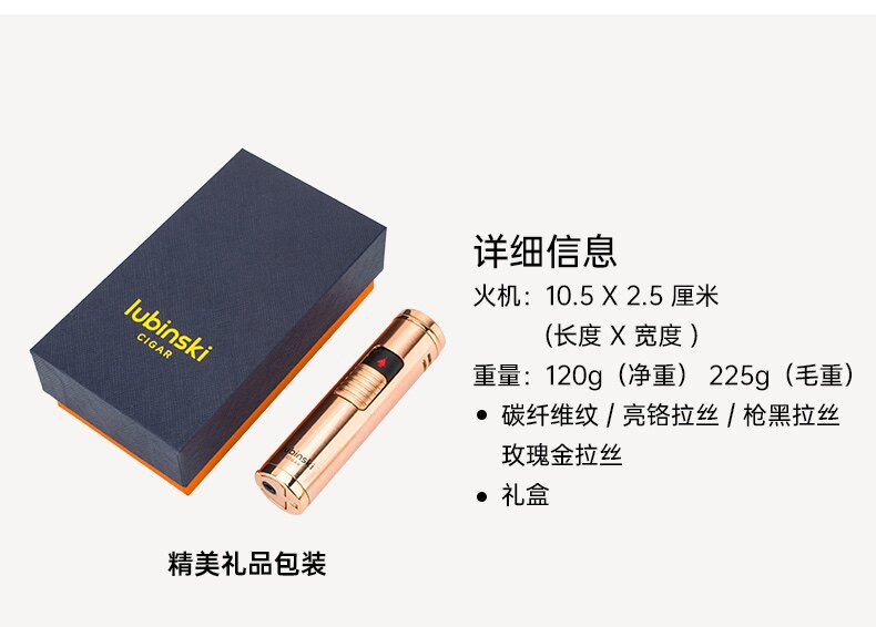 📚 Lubinski鲁宾斯基雪茄打火机 大容量三火焰 点燃更迅速