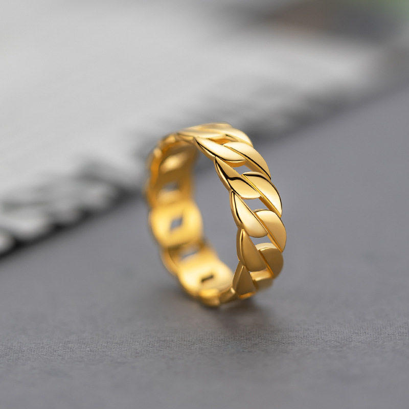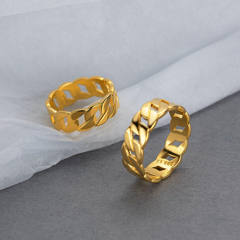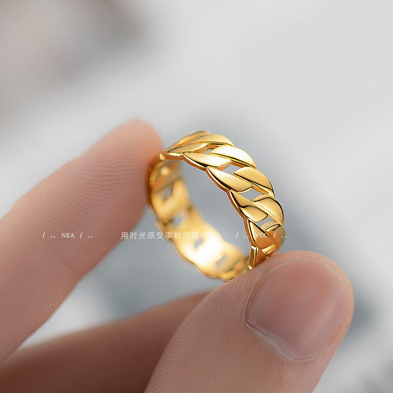 📚 热卖古巴炼条沙金指环时尚ins简约网红黄金冷淡风炼条锡金戒指